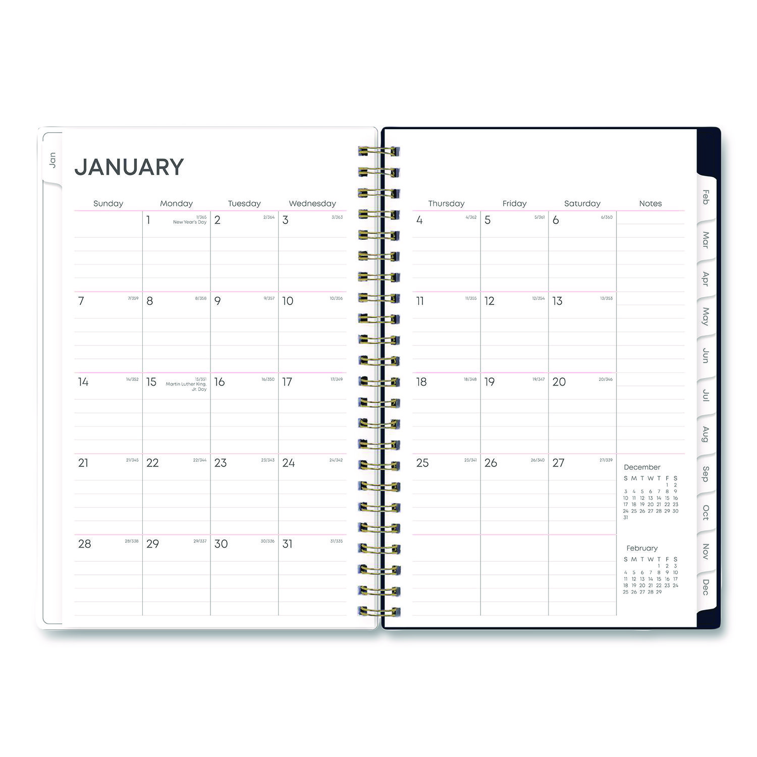 Everything you need to keep your weeks and months organized and on track. Minimalistic Ashlyn floral cover design conveys a quiet sophistication with a gentle undertone of playfulness. Tabbed one month per two-page spreads feature ruled blocks, past/future-month reference blocks and a ruled Notes column on the right-hand margin. One week per two-page spreads feature open-format appointment scheduling to give you the freedom to plan your weeks your way, so you can easily adjust to whatever may come. A handy appendix provides several useful reference materials and a ruled notes section for meeting and appointment takeaways, event planning and whatever you find to be of note. High-quality paper minimizes the potential for ink-bleed, and the book’s twin-wire binding delivers easy page-turning. Dated: Yes; Academic Year: No; Calendar Format: Weekly/Monthly; Calendar Spread Format: One Week per Two-Page Spread; One Month per Two-Page Spread.