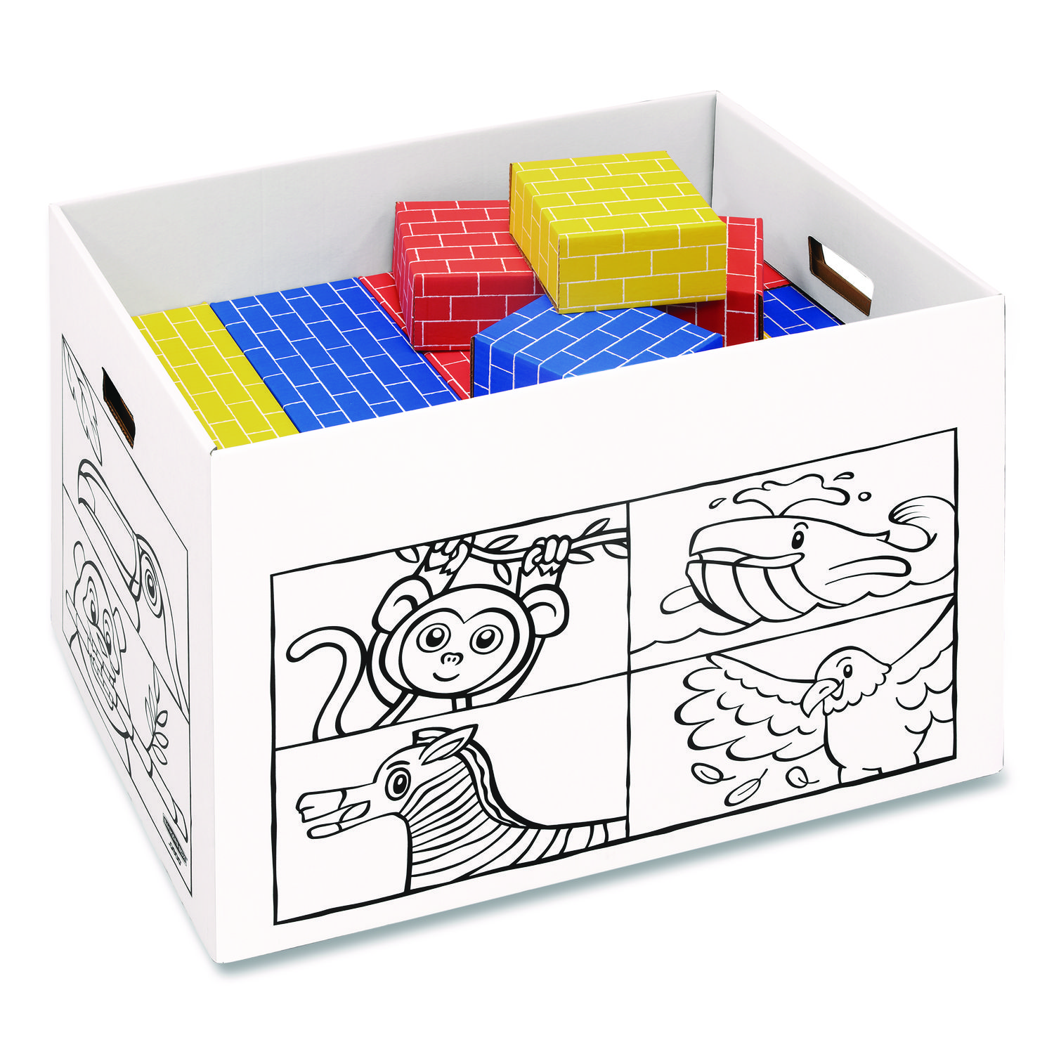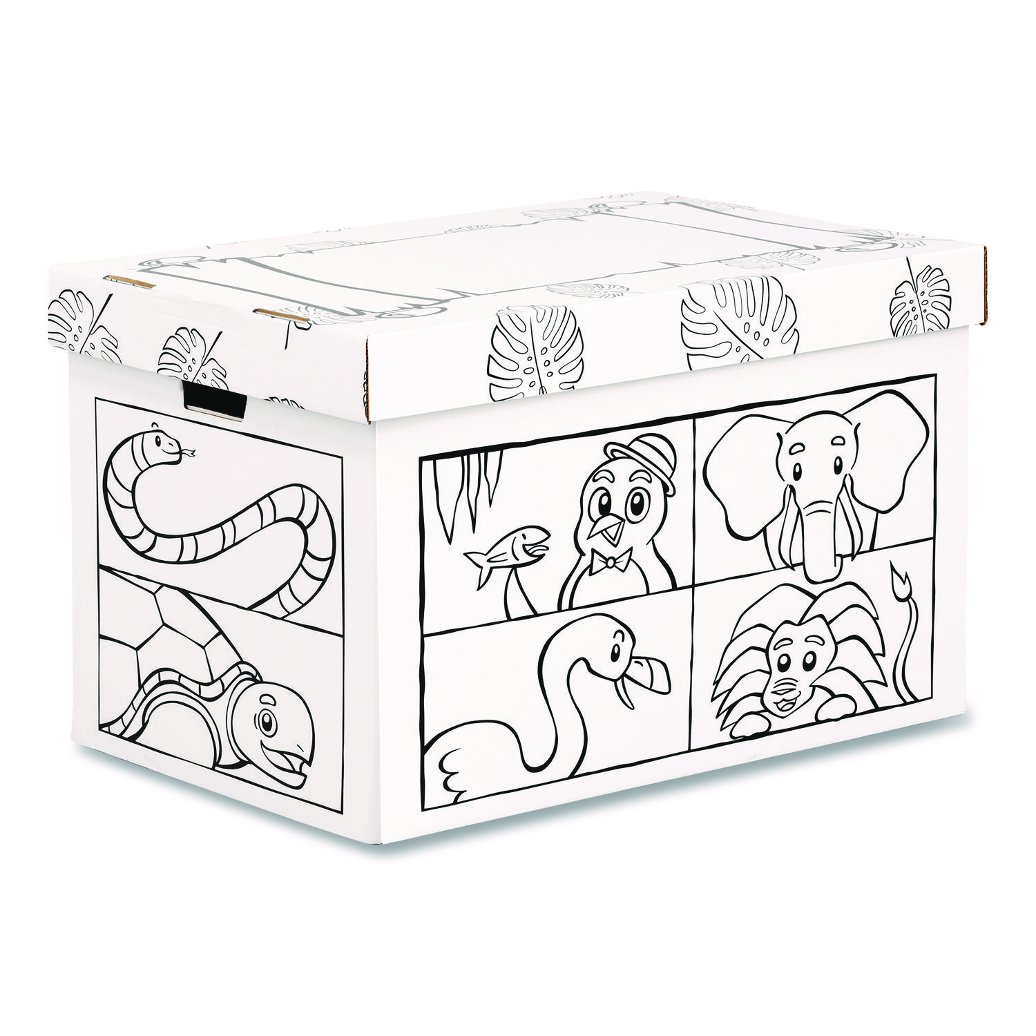 Use markers, crayons, or paint to decorate your toy box anyway you want. 32-ECT corrugated board with kid-friendly rounded edges provides strength and safety for hours of play. Neatly stores Bankers Box 40 pack Building Block set, stuffed animals, sporting gear, or other misc. kid items. Lead-free design is F963 Standard Consumer Safety Specification certified. For children 3+. Easy assembly. Made in the USA. Animals Design. Number of Compartments: 1; Capacity (Volume): 39.27 gal; Maximum Volume Range: 31 to 40 gal; Capacity (Area): 5.25 cu ft.