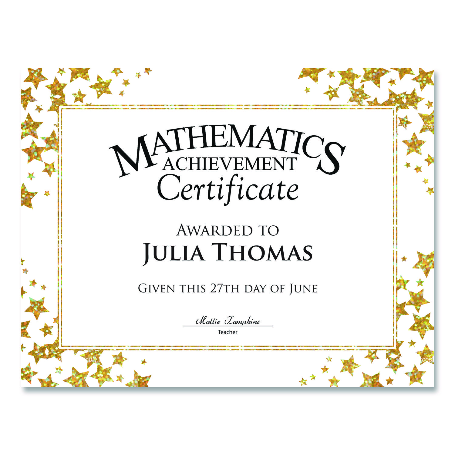 Award Certificates, 8.5 x 11, White with Gold/White Star Border, 25/Pack