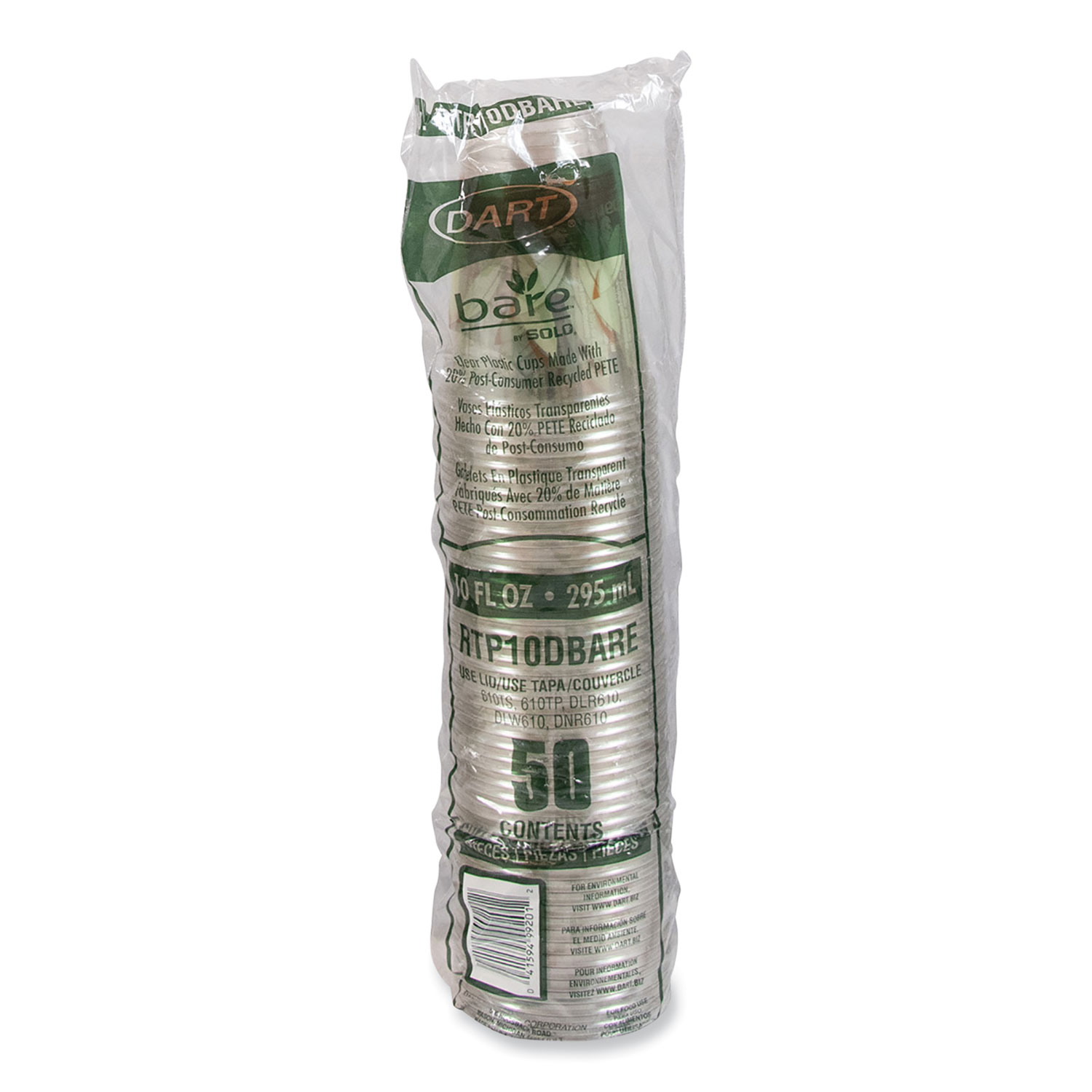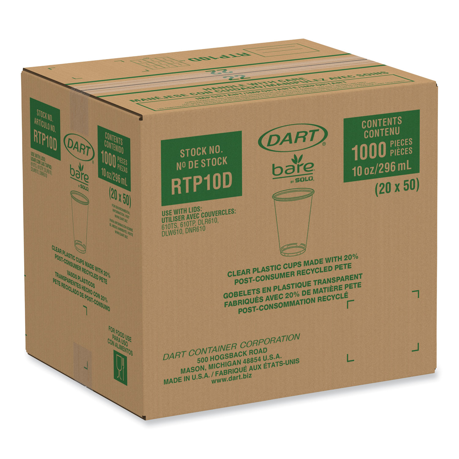 When appearance, product visibility and recycled content are your priorities, choose Bare Eco-Forward. Crack- and shatter-resistant, sturdy and durable RPET provides increased functionality. Crystal-clear, almost glass-like in appearance, they’re perfect for just about any non-frozen cold beverage: iced coffee, lemonade, soft drinks and more. Supporting the use of post-consumer recycled content is a key tenet of the SOLO Eco-Forward platform. Eco-Forward offerings include products made with recycled PET water bottles and food containers as well as paper collected from offices and school recycling programs. ProPlanet™ Seal—This product earns Dart’s ProPlanet™ Seal because it contains at least 20% post-consumer recycled content. Cup Type: Cold Cup; Interior Volume Capacity: 10 oz; Material(s): Recycled Polyethylene Terephthalate (RPET); Material Type: Plastic.
