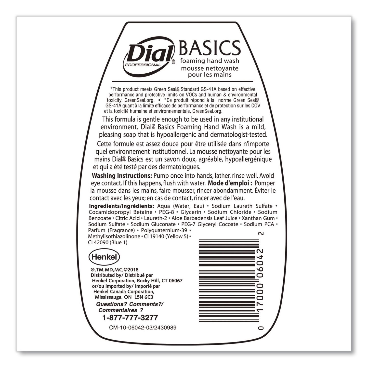 DialĀ® Professional Basics Foaming Hand Wash with aloe is mild and gentle on skin. Its rich forming lather rinses clean and provides a pleasing handwashing experience. This dermatologist-tested and hypoallergenic formula is excellent for frequent hand washing. Approved as cruelty-free under the Leaping Bunny Program. Perfect for any commercial setting. Soap Type: Foam; Volume Capacity: 7.5 oz; Scent: Honeysuckle; Personal Soaps Application: Hand.