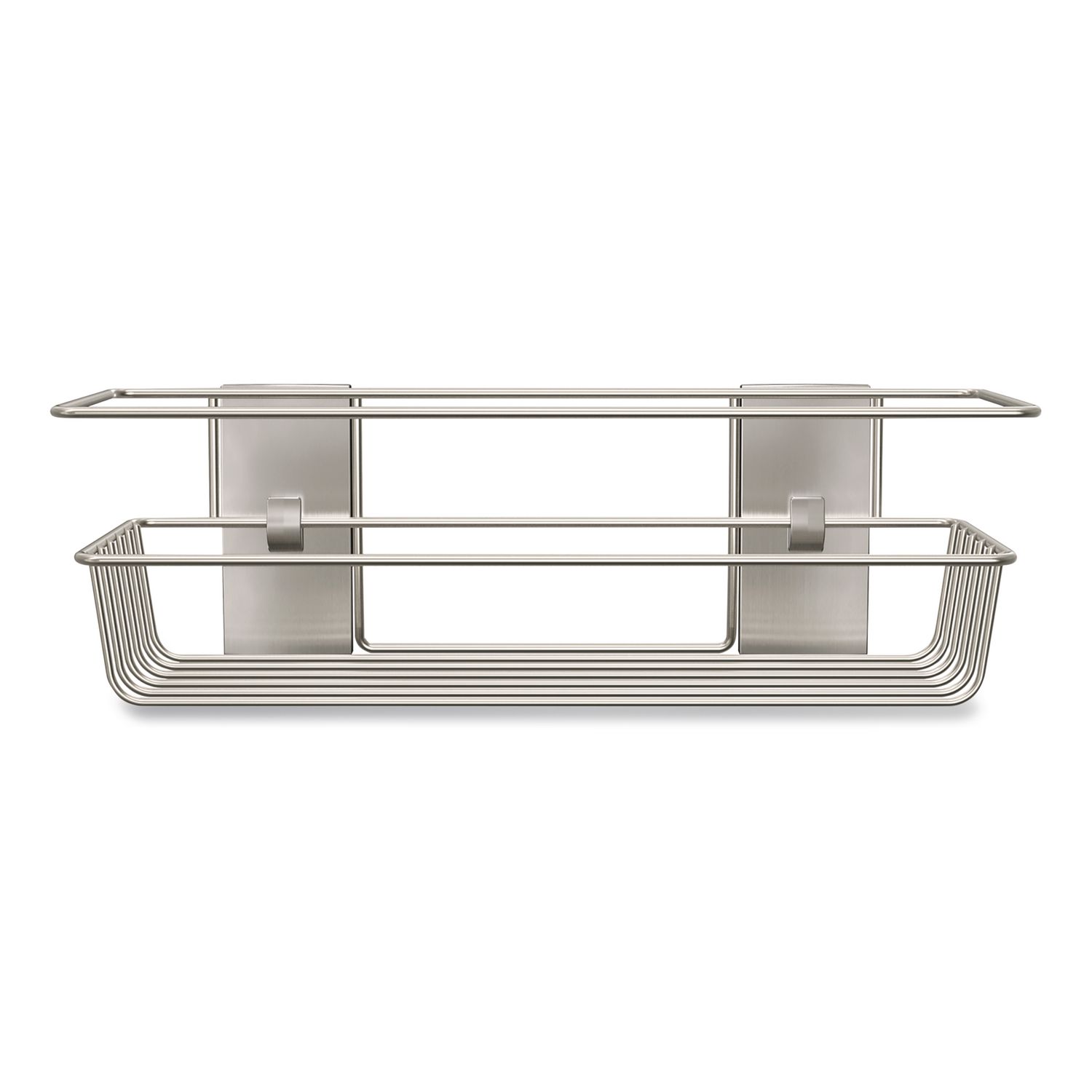 Keep your shower essentials organized. This caddy sticks to many surfaces, including glass, mirror, tile, fiberglass, wood and painted surfaces. It adheres firmly and comes off leaving no holes or sticky residue, providing a great alternative to unsightly, unreliable suction cups and damaging screws and nails. Number of Compartments: 1; Capacity (Weight): 6.5 lbs; Material(s): Metal; Material Family: Metal.