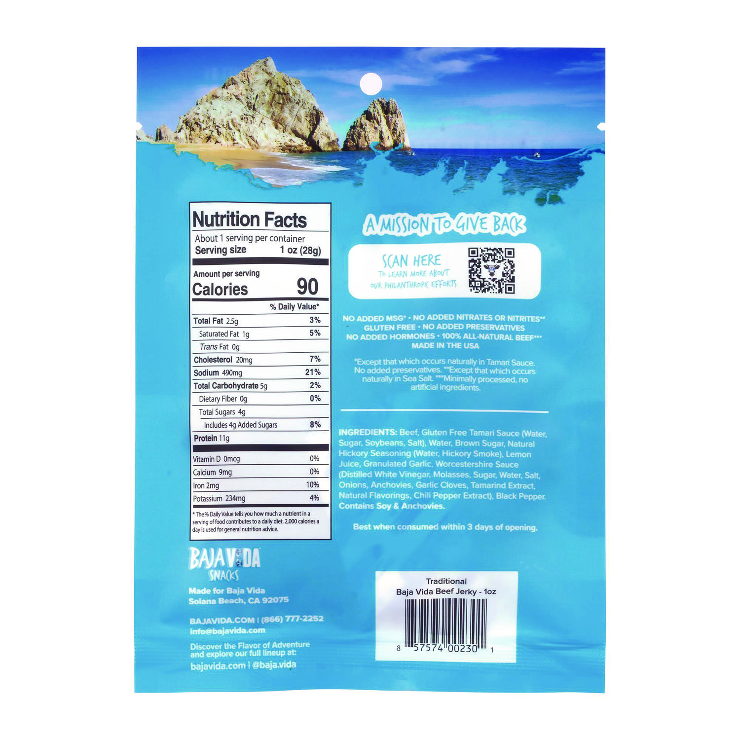 Our Traditional flavor features a splash of tamari and Worcestershire sauce, a dash of brown sugar and hickory smoke flavor, and a pinch of lemon juice, garlic and ground pepper. It’s important to point out that these ingredients aren’t meant to change the flavor of our high-grade beef but, rather, to enhance it. All these spices and seasonings bring out the buttery and savory essence that we all love so much about a good cut of beef. Food Type: Meat Sticks & Jerky; Flavor: Original; Capacity (Weight): 1 oz; Sugar Free: No.