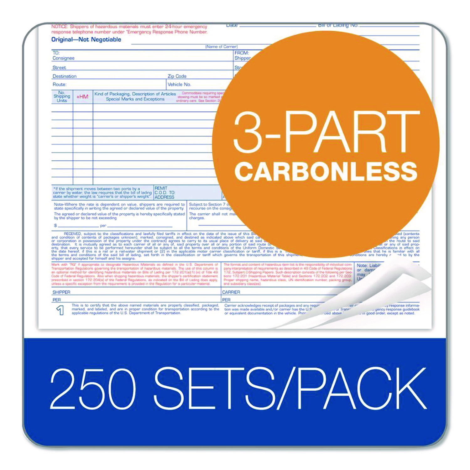 Bill of Lading – Short Form for Up to Ten Articles, Three-Part Carbonless, 8.5 x 6.94, 250 Forms Total
