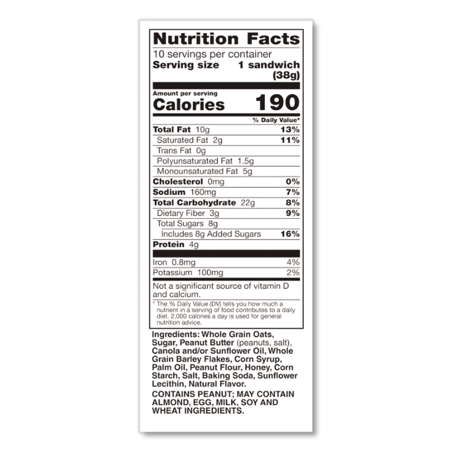 Biscuit boost! Rich, sweet and creamy nut-butter filling sandwiched between two crispy, 100% natural, whole-grain oat biscuits hits you with a surge of energy. Good source of fiber. No trans fat, no high fructose corn syrup and no artificial flavors. Individually wrapped. Food Type: Cookies; Flavor: Honey with Peanut Butter; Capacity (Weight): 1.35 oz; Sugar Free: No.