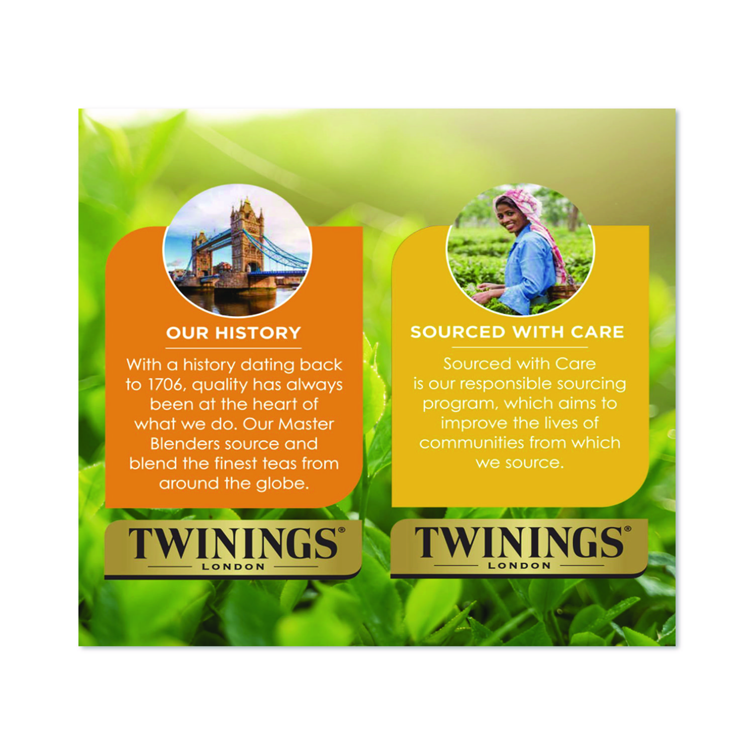 Enjoy this assortment of delicious classic black tea offerings from the master blenders of Twinings. At Twinings, they believe there is possibility in every moment to live well and enjoy life, from the way people move to how they connect to what they eat and drink. The brand is committed to providing a wide range of hot and cold beverages specially crafted to suit your unique needs and help you thrive. Each day is an opportunity to be just a little better than the day before, and Twinings is committed to the journey, one sip at a time. Beverage Type: Black Tea; Flavor: Assorted; Product Packaging: Tea Bag; Flavor Assortment: Earl Grey; English Breakfast, Irish Breakfast; Lady Grey.
