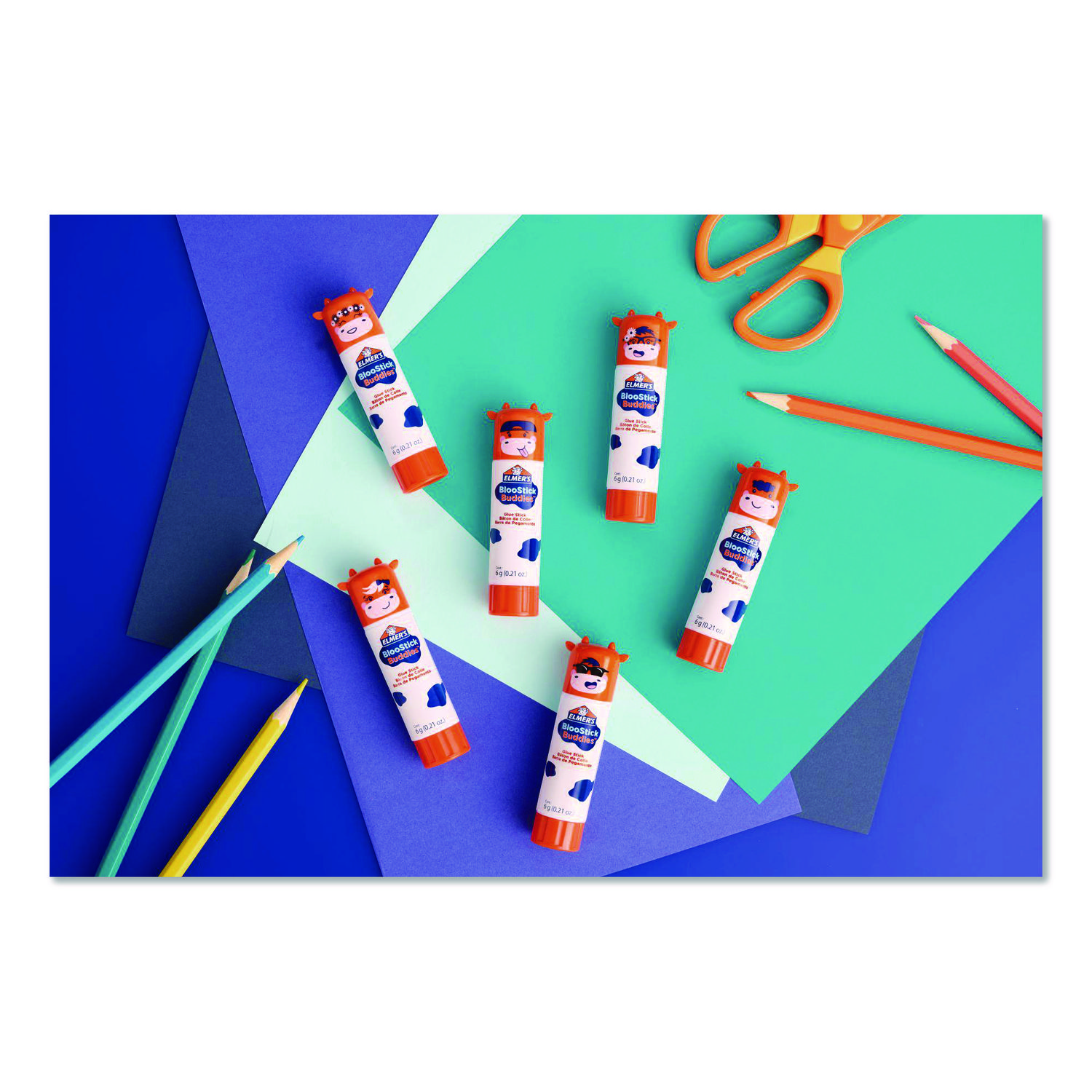 See exactly where you’re applying adhesive with this combo pack of Elmer’s Glue Sticks! First, you’ll get a set of Elmer’s BlooStick Buddies Glue Sticks to turn up the fun on any arts, crafts, or school project! Each cap of these school glue sticks highlights a special character with their own unique personality. The playful ears double as an anti-roll device while the funny face on each cap will encourage kids to keep the cap on when not in use. Best of all, these glue sticks go on blue and dry clear. You’ll also receive a set of Disappearing Purple Glue Sticks, that do the same, but in purple! All Elmer’s glue sticks in this pack are safe, washable, and nontoxic, perfect for school or home. Adhesive Type: Solid; Product Packaging: Stick; Washable/Removable: Yes; Color on Application: Blue; Purple.