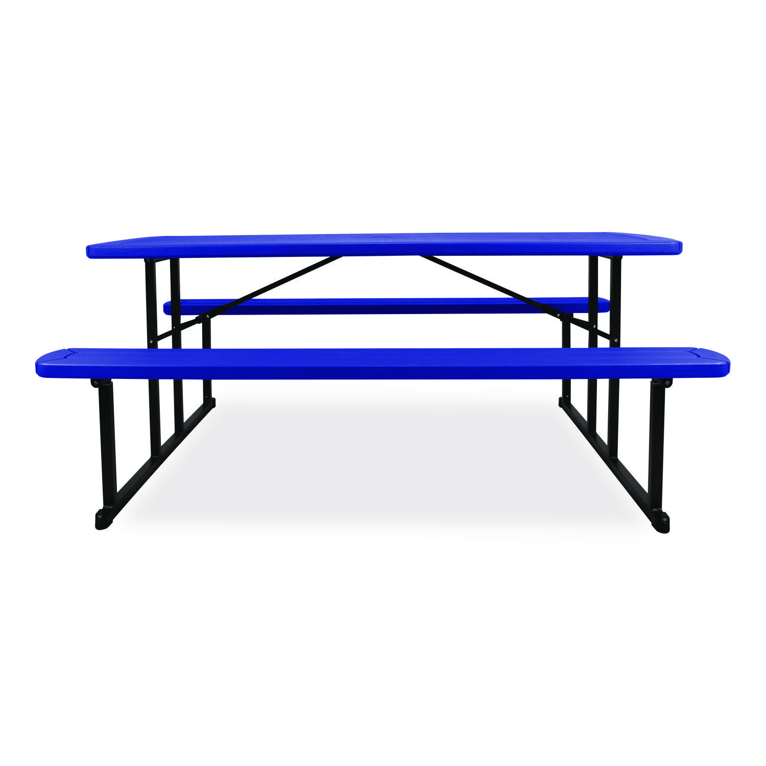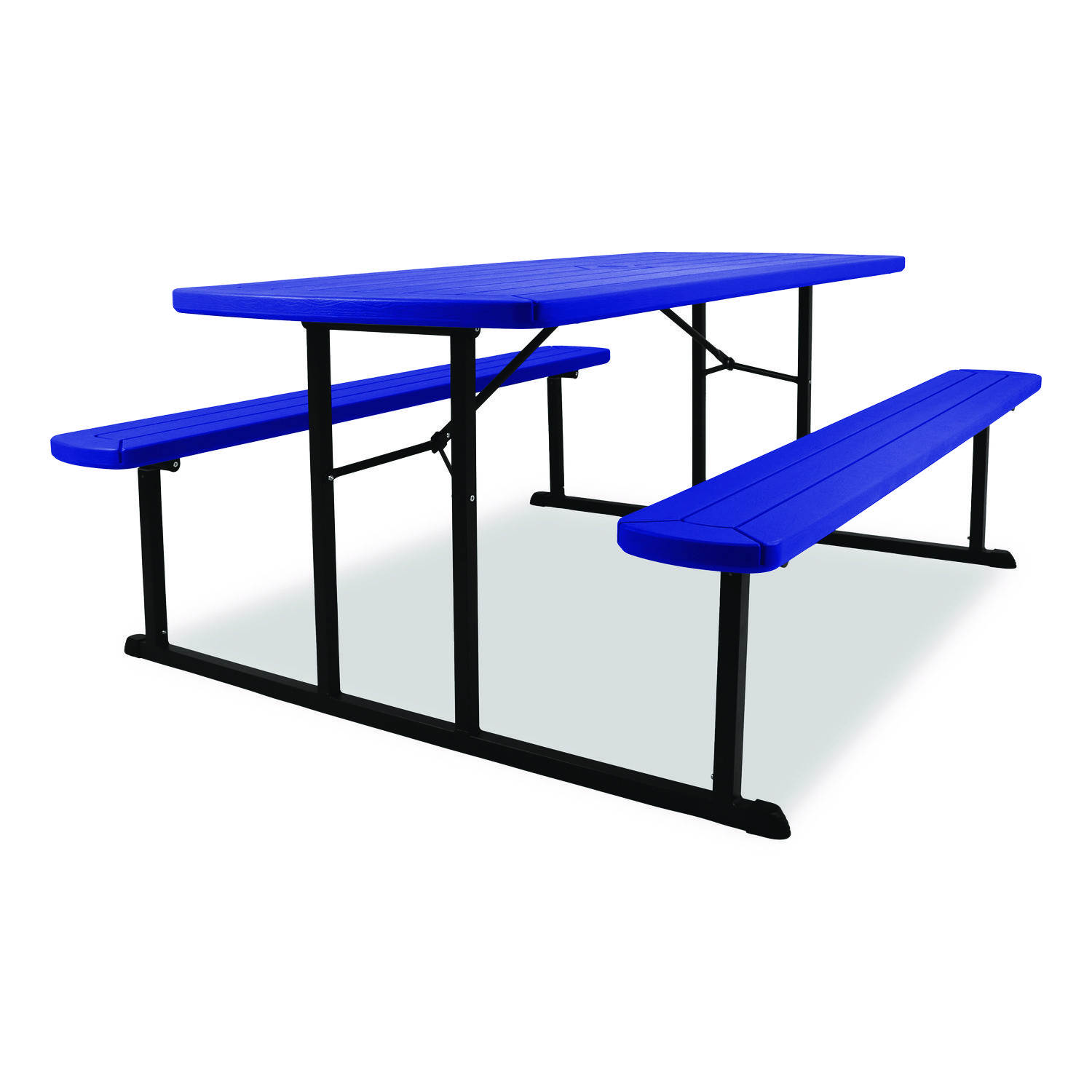 Blow Molded Folding Picnic Table, Rectangular, 57w x 72d x 29.5h, Blue Top, Black Base/Legs