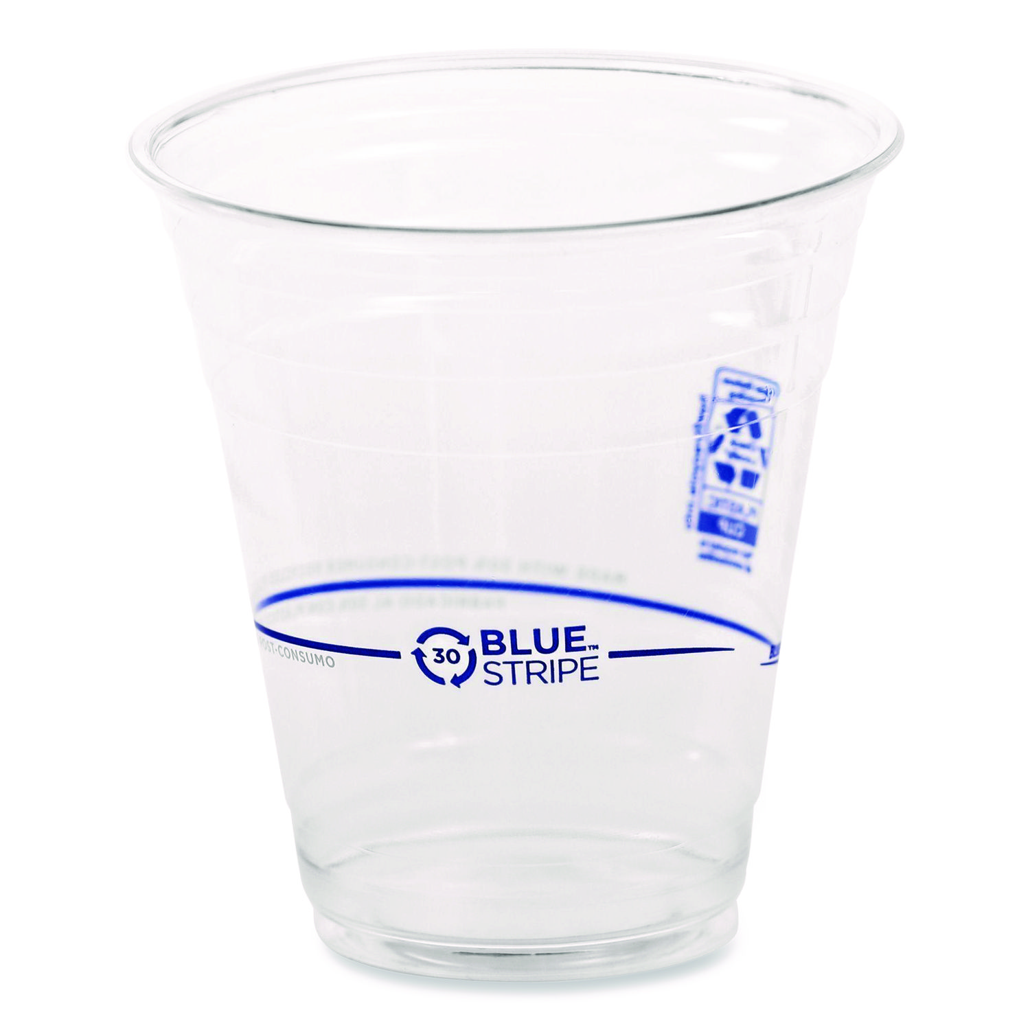 BlueStripe 25% Recycled Content Cold Cups, 12 oz, Plastic, Clear/Blue, 50/Pack, 20 Packs/Carton