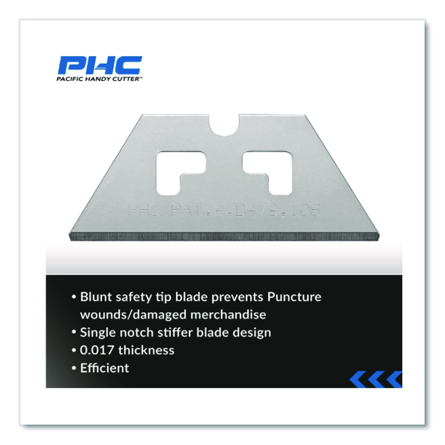 Purpose-built blades enhance your cutter’s precise cutting geometry, easily slicing through corrugated boxes and chipboard. Blunt safety tips prevent puncture wounds and damaged merchandise. Stiff, single-notch design with L-shaped slots. High-carbon steel. Blade Type: Safety Razor; Cutting Edge Form: Straight; Material(s): Carbon Steel; Blade Length: 2.25″.