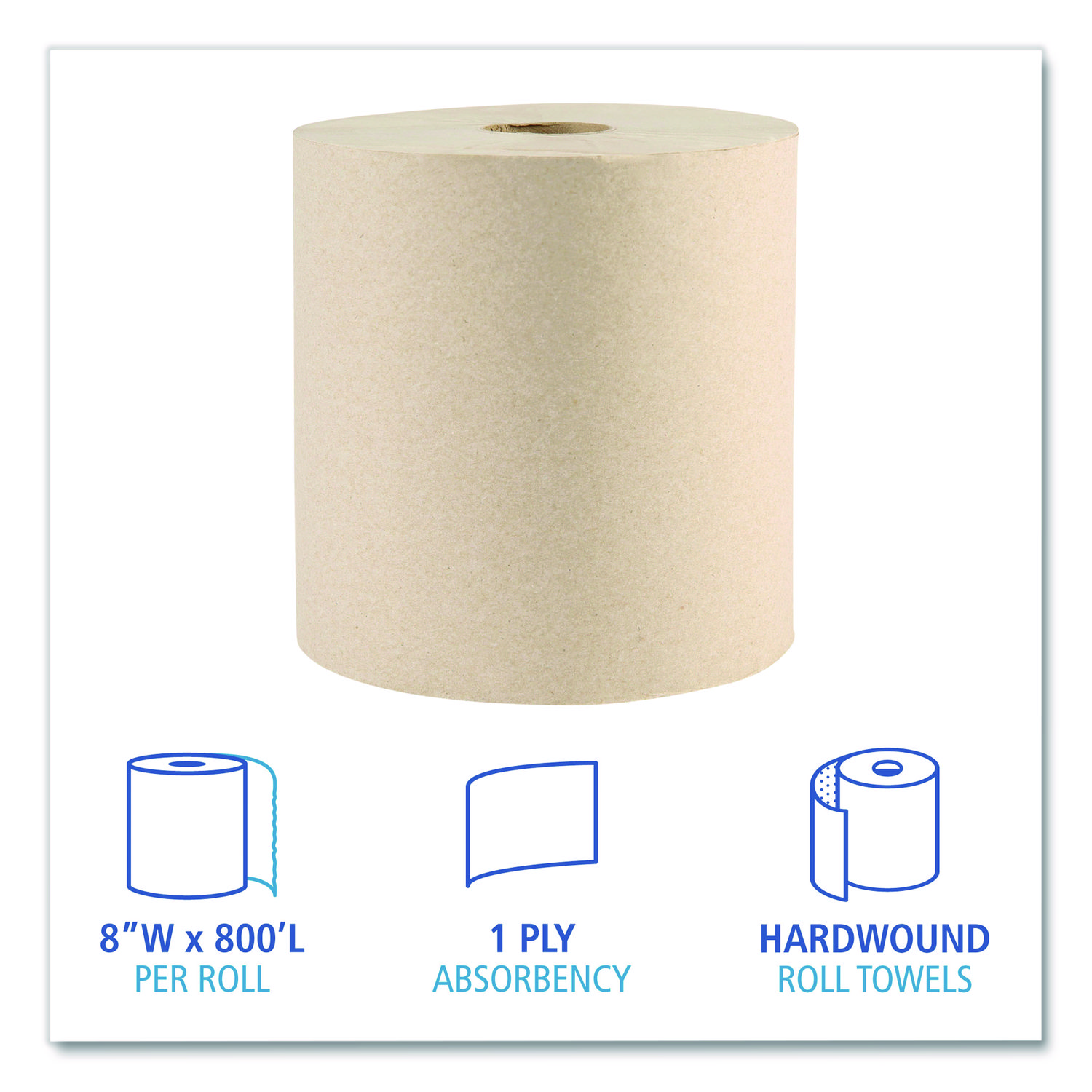Boardwalk Green Xtra Roll Towels, 1-Ply, 8″ x 800 ft, Natural, 6 Rolls/Carton, 55 Cartons/Pallet