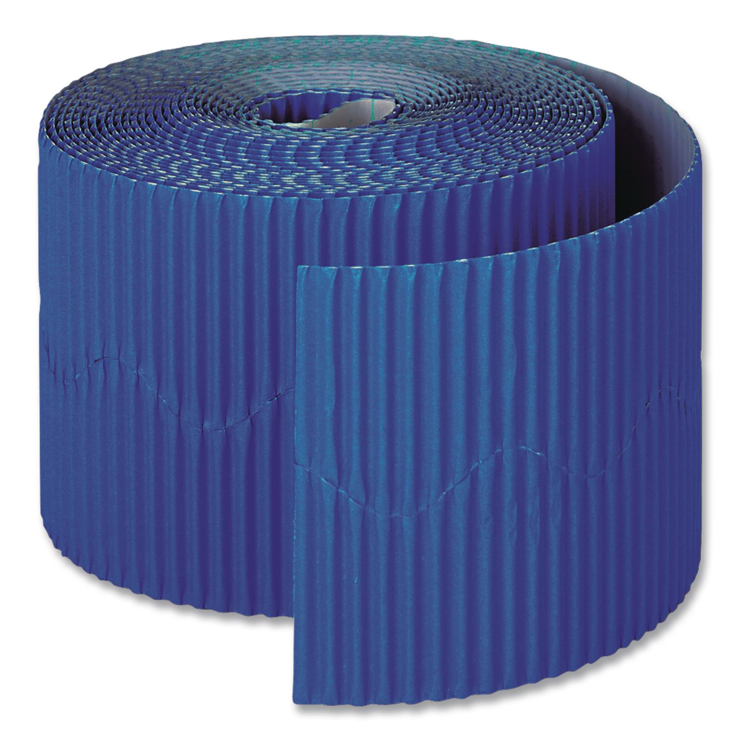 Dress up any bulletin or display board with this decorative border. Corrugated, scalloped design delivers the appearance of a fine framed edge. Rich, fade-resistant colors help enliven any environment. Color(s): Rich Blue; Color Family: Blue; Width: 2.25″; Length: 50 ft.