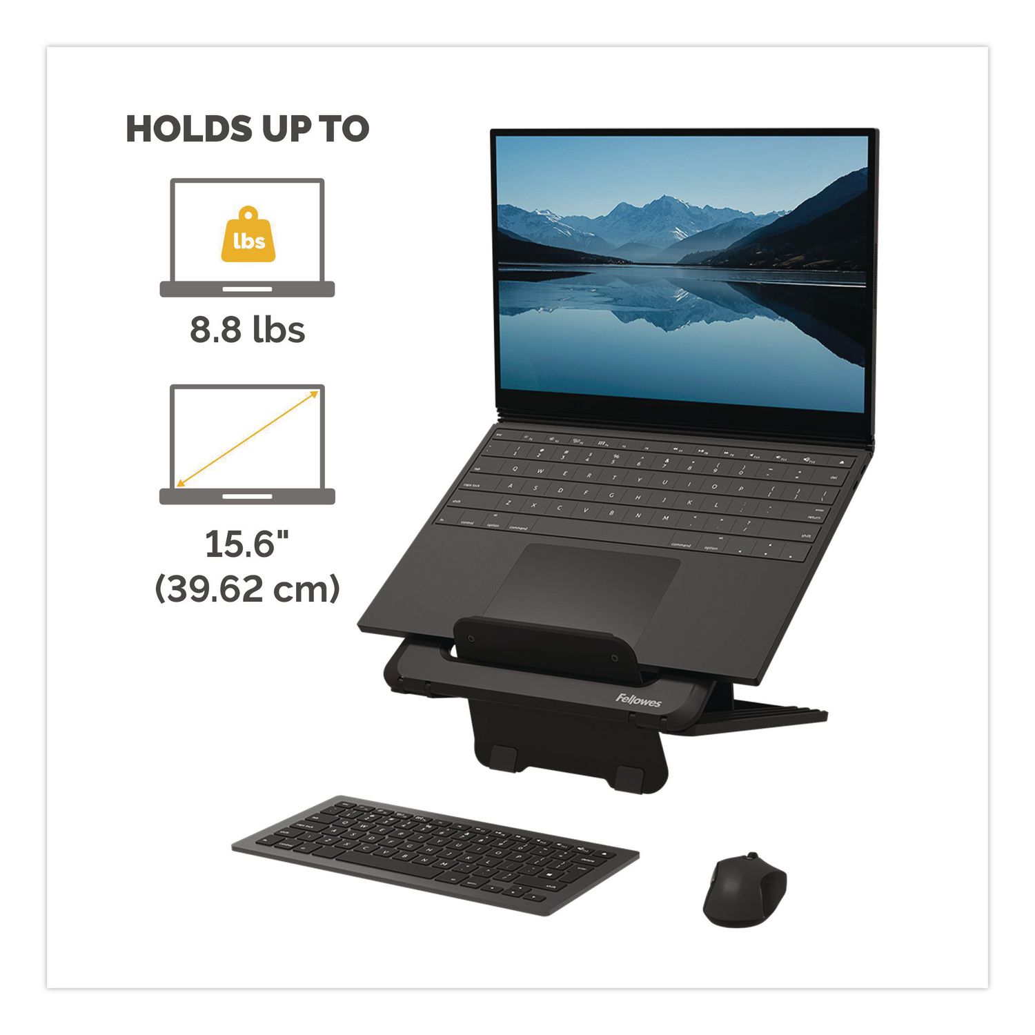 Breyta Laptop Stand, 9.25″ x 10.55″ x 0.55″ to 8″, Black, Supports Up to 8.8 lbs.