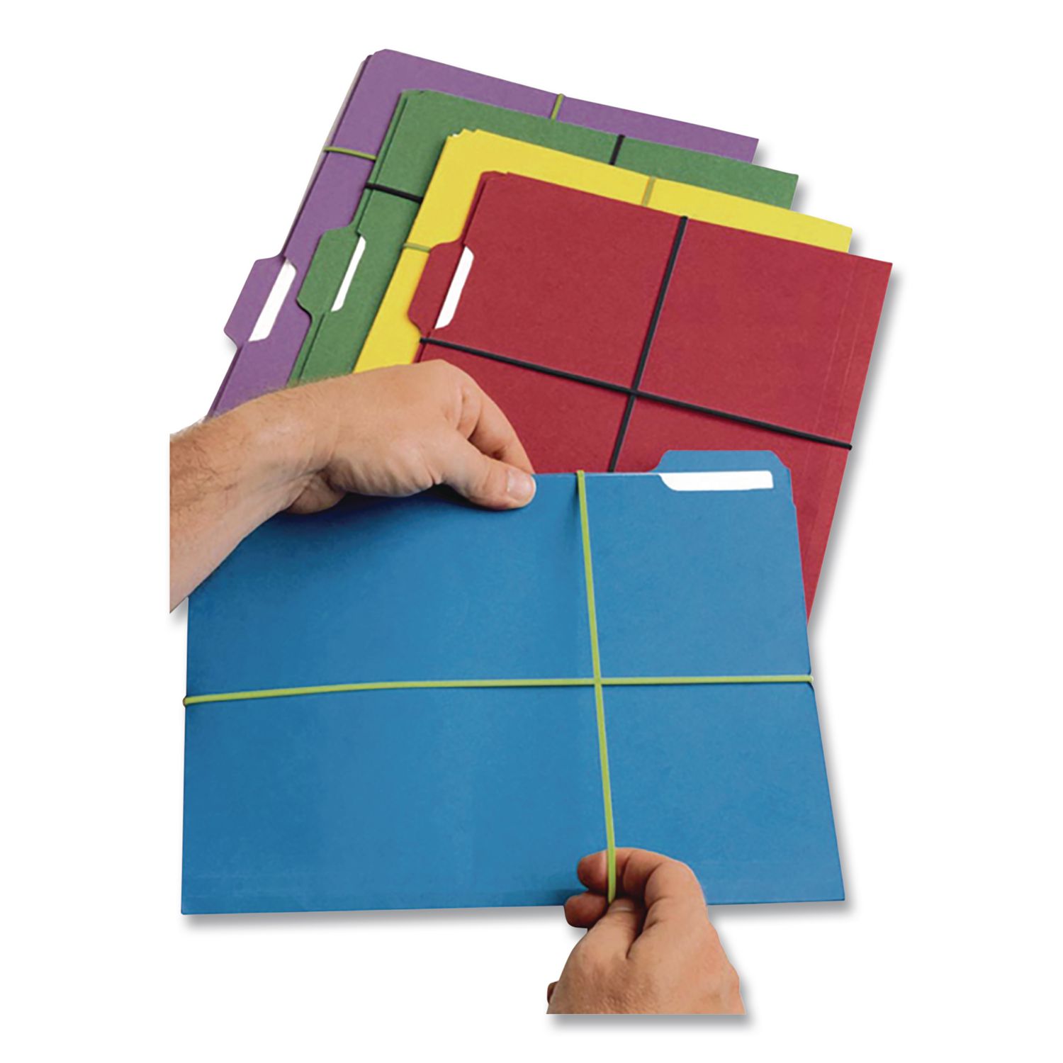 BritesĀ® File Bands are durable, reusable, multipurpose colored elastics designed to make your life easier and allow you to work quicker. Made of non-latex rubber, they are great for use in schools, offices and homes that are latex-free. These bands come in three bright shades for quick and simple file organization. They are easily stretchable and spring back to create a secure and tight fit over a variety of items around the home or office. File Bands can help you organize your office, kitchen, garage, classroom and craft room. These colored rubber bands are freezer and microwave safe, making them great for creating a tight seal on food storage in the fridge, freezer and microwave. Approximate Band Count: 50; Band Width: 0.13″; Band Length: 7″; Band Color: Assorted.