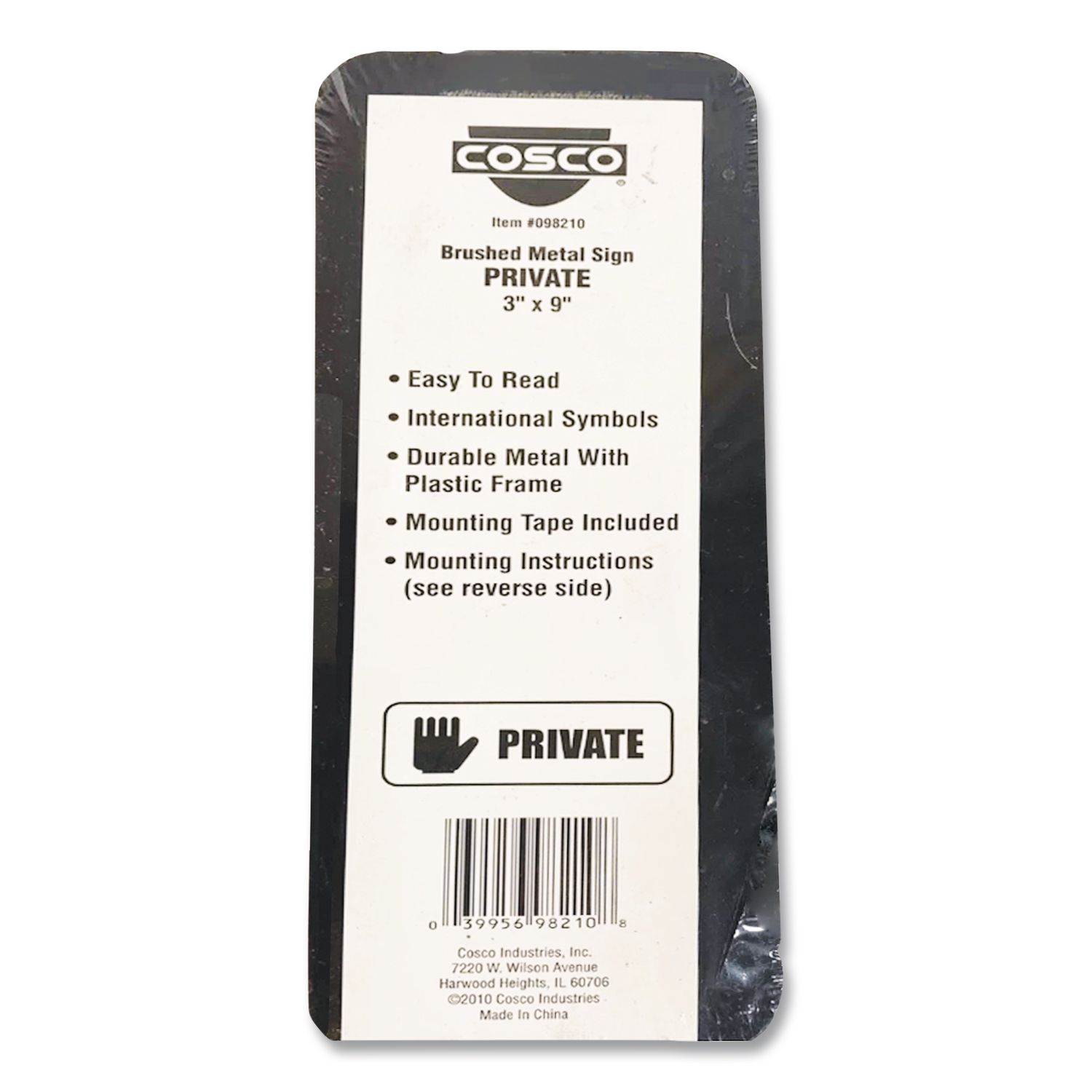 Brushed Metal Office Sign, Private, 9 x 3, Silver