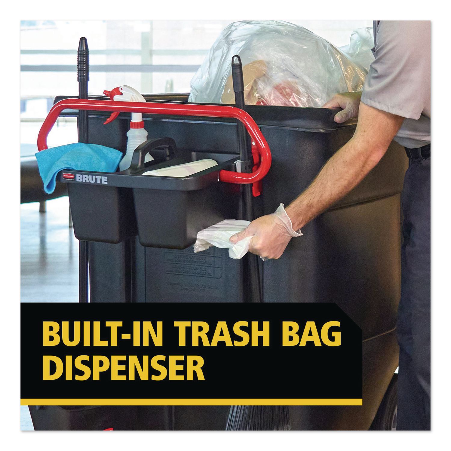 This retrofittable ergonomic handle supports day-to-day tasks and features a removable caddy for easy dumping. The caddy includes two integrated stick good holders for quick tool access and a built-in trash bag dispenser to keep supplies organized on the go. Designed with user comfort in mind, the handle helps reduce strain while maintaining control during transport. Ideal for busy shifts, it keeps essential tools and materials within reach to maximize efficiency. Accessory Type: Handle and Caddy; Width: 25.45″; Depth: 25.45″; Height: 15″.
