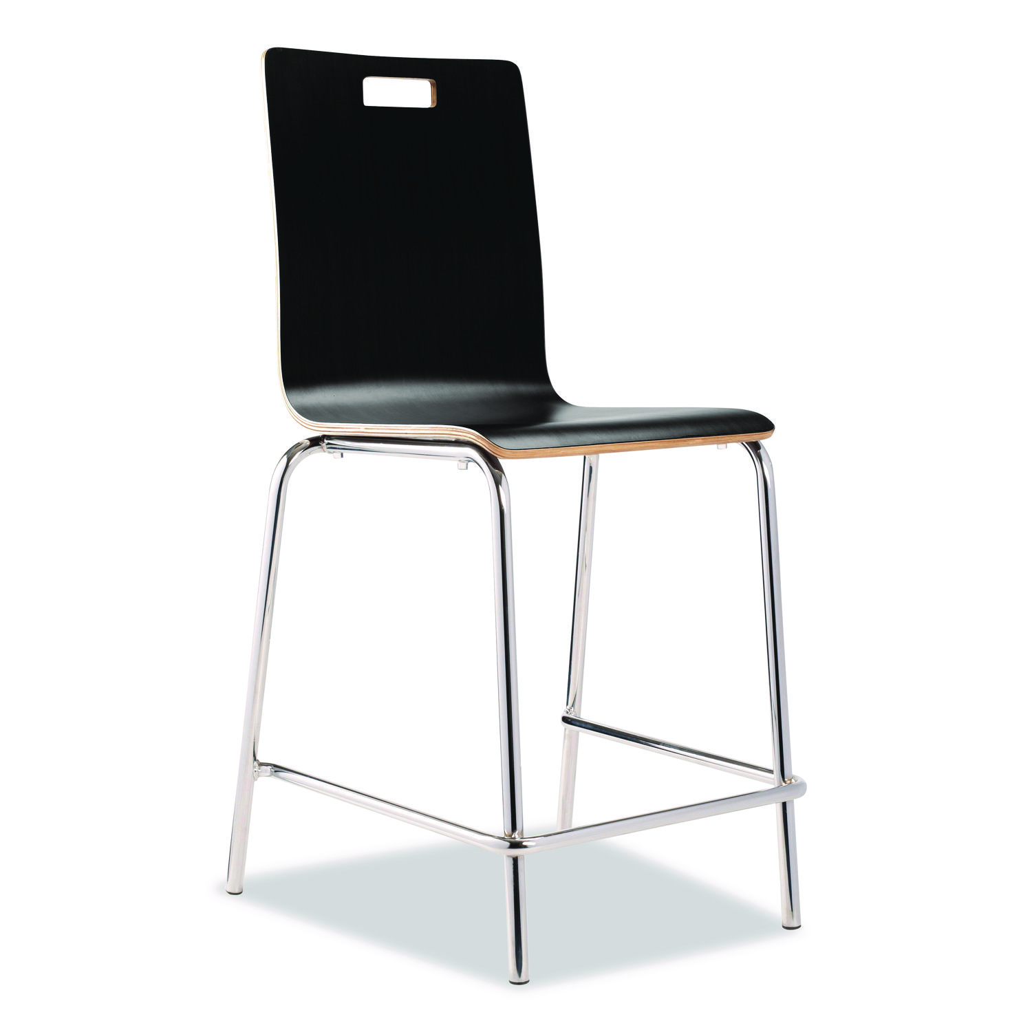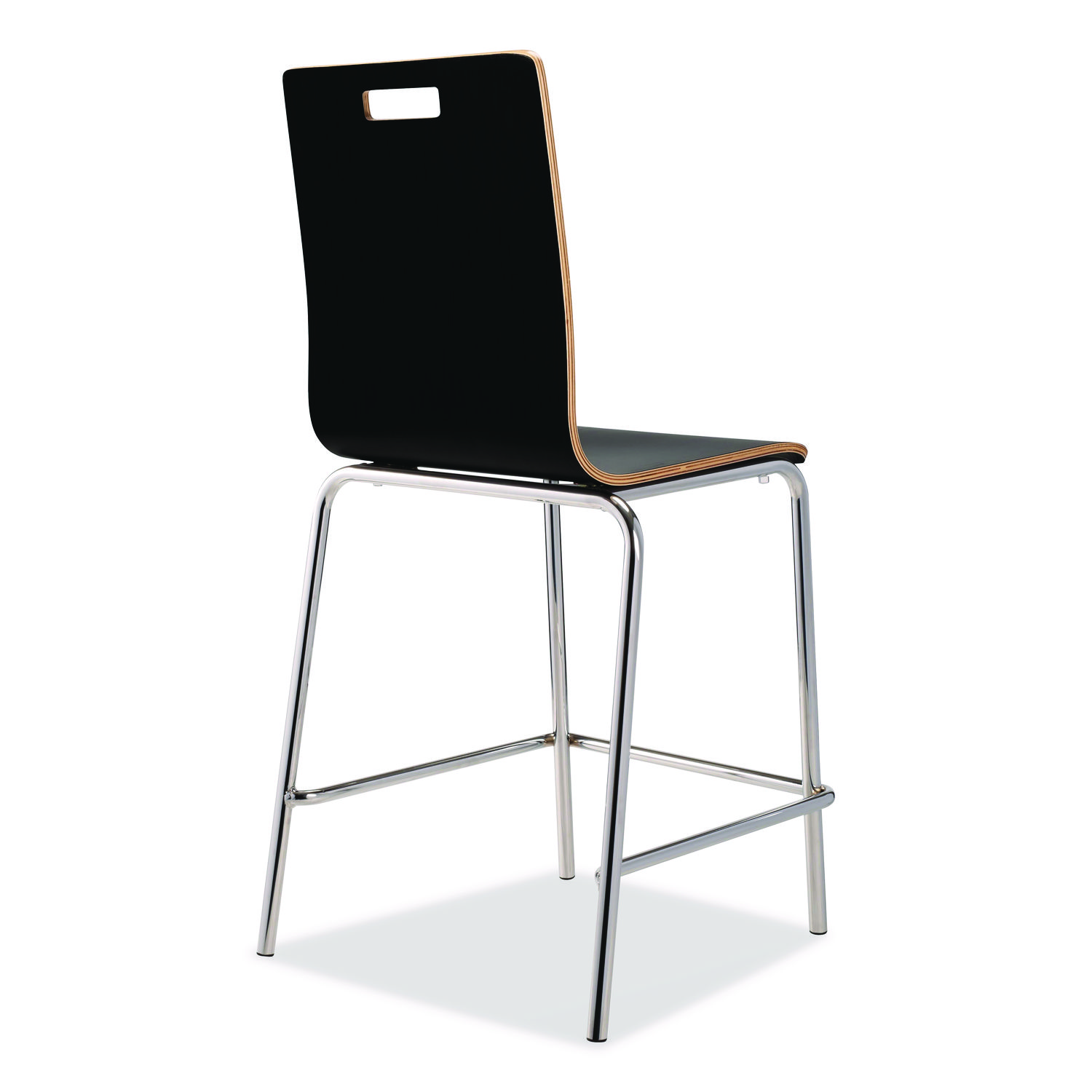 The Bushwick Bentwood Stool from NPS features an eight-layer bent plywood seat with a high end HPL finish, and legs made of 0.88-in, 16-gauge chrome tubing. Modern handle for easy movement and storage. Counter Height. Recommended Application Area(s): Breakroom & Foodservice; Conference & Meeting; General Office & Task; Seat Color: Black; Back Color: Black; Color Family: Black.