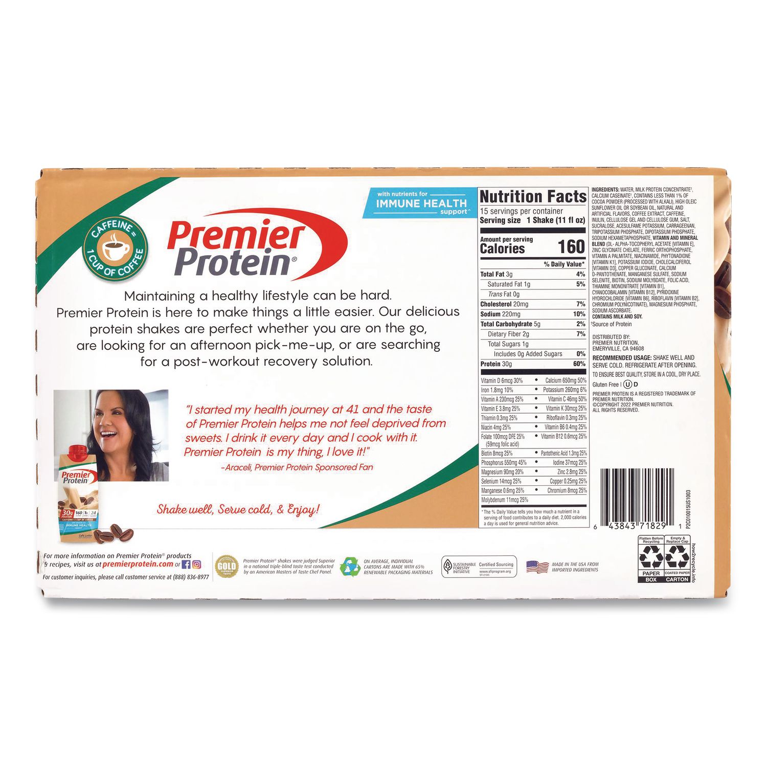Protein isn’t just good for nourishment. It’s an essential nutrient that helps your body build and maintain muscle. In fact, studies suggest it may be beneficial to consume 25 g to 30 g of protein at each meal. With this indulgent flavor and smooth, creamy texture, it’s no wonder Premier Protein® shakes have won The American Masters of Taste Gold Medal for superior tasting ready-to-drink protein beverages every year since 2015. The award-winning taste comes without all the sugar, helping to take on cravings. The shakes contain Vitamins C and E, important antioxidants your body needs to help support a healthy immune system. Think of a shake as part of your daily hookup of important nutrients that help support your immune system and help give your body the nourishment it needs. Beverage Type: Protein Shake; Flavor: Café Latte; Product Packaging: Bottle; Volume Capacity: 11 oz.