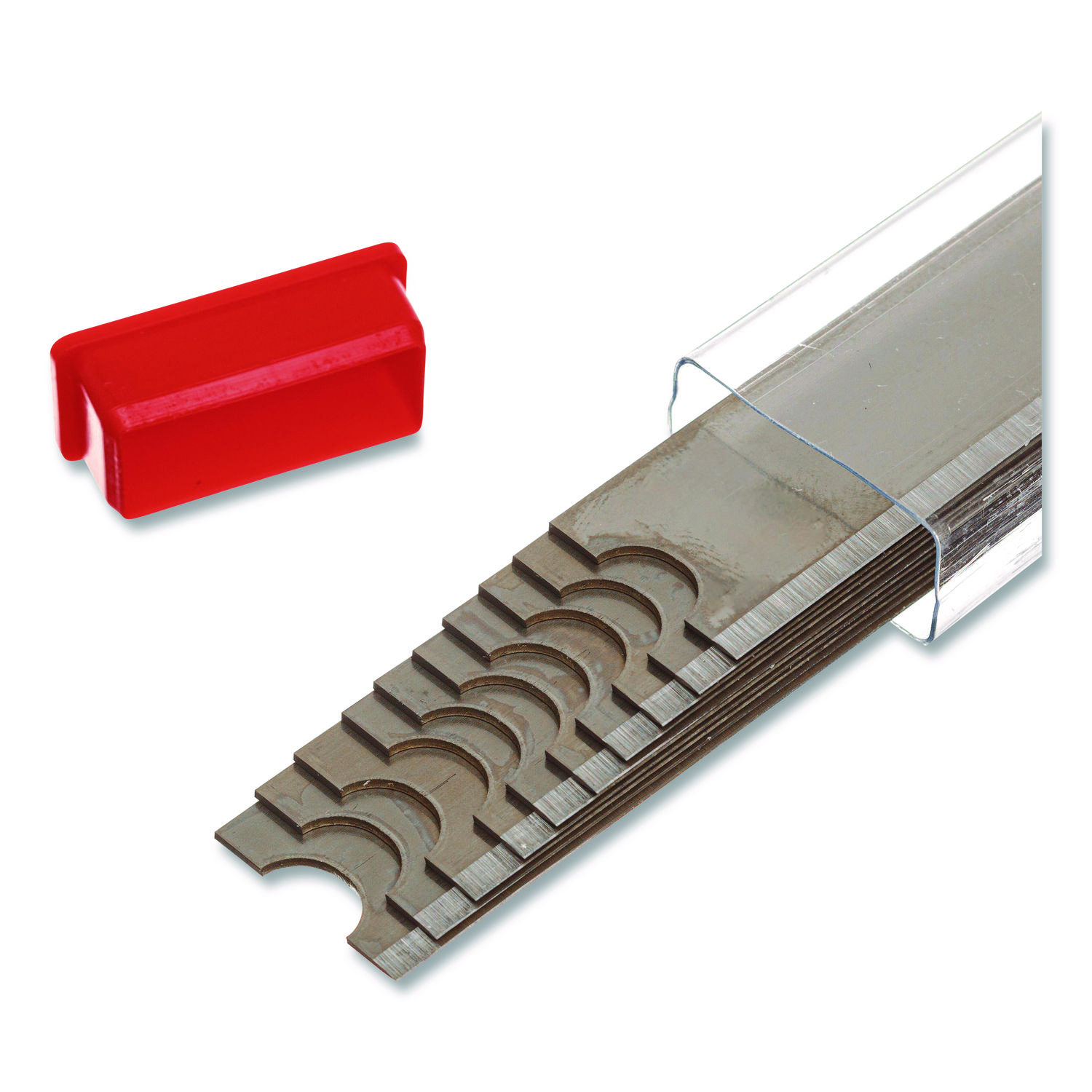 Replacement blades. Includes dispenser. Sharp side for scraping off paint and stickers, and dull side for removing cement and stucco. Blade Type: Reversible; Cutting Edge Form: Straight; Material(s): Carbon Steel; Blade Length: 6″.