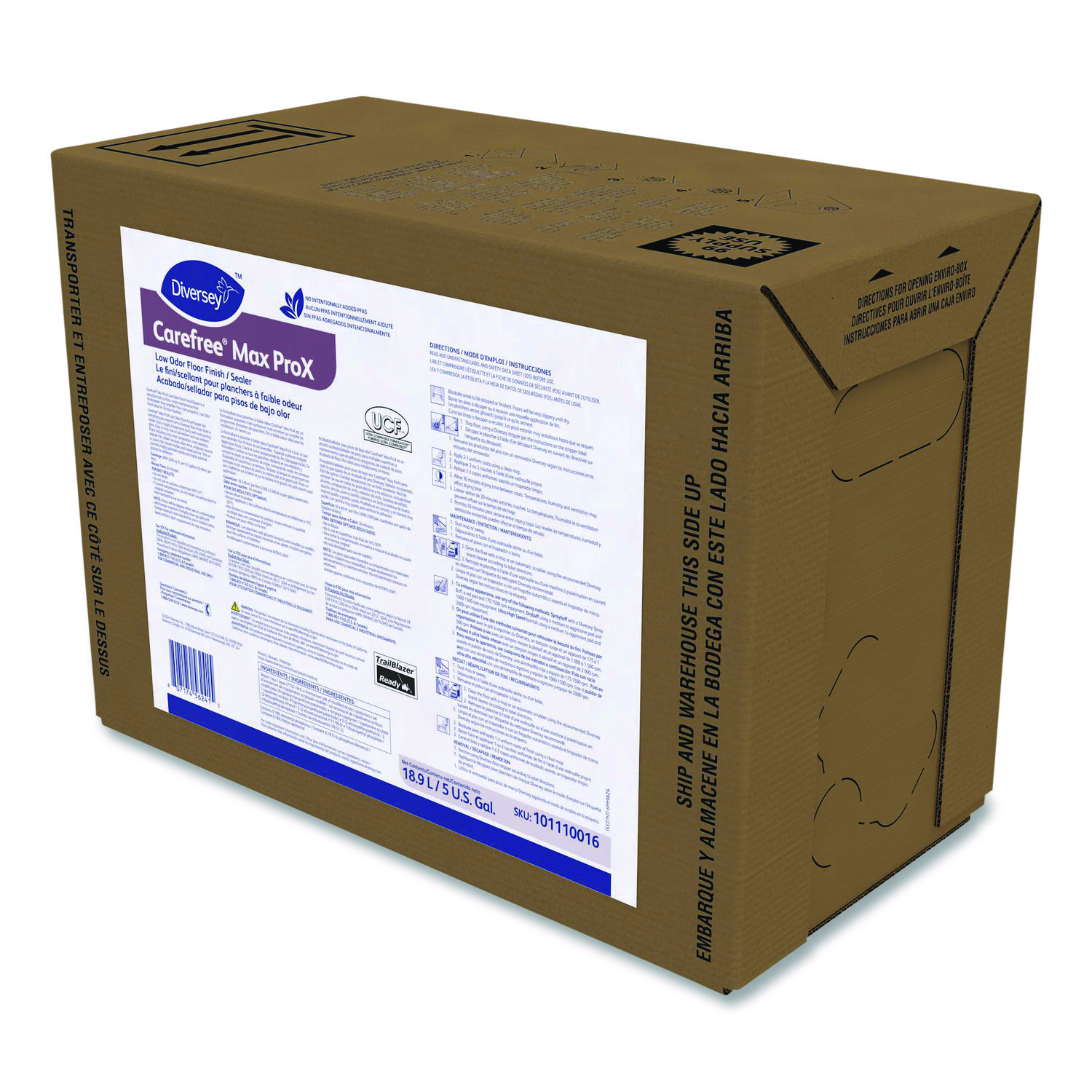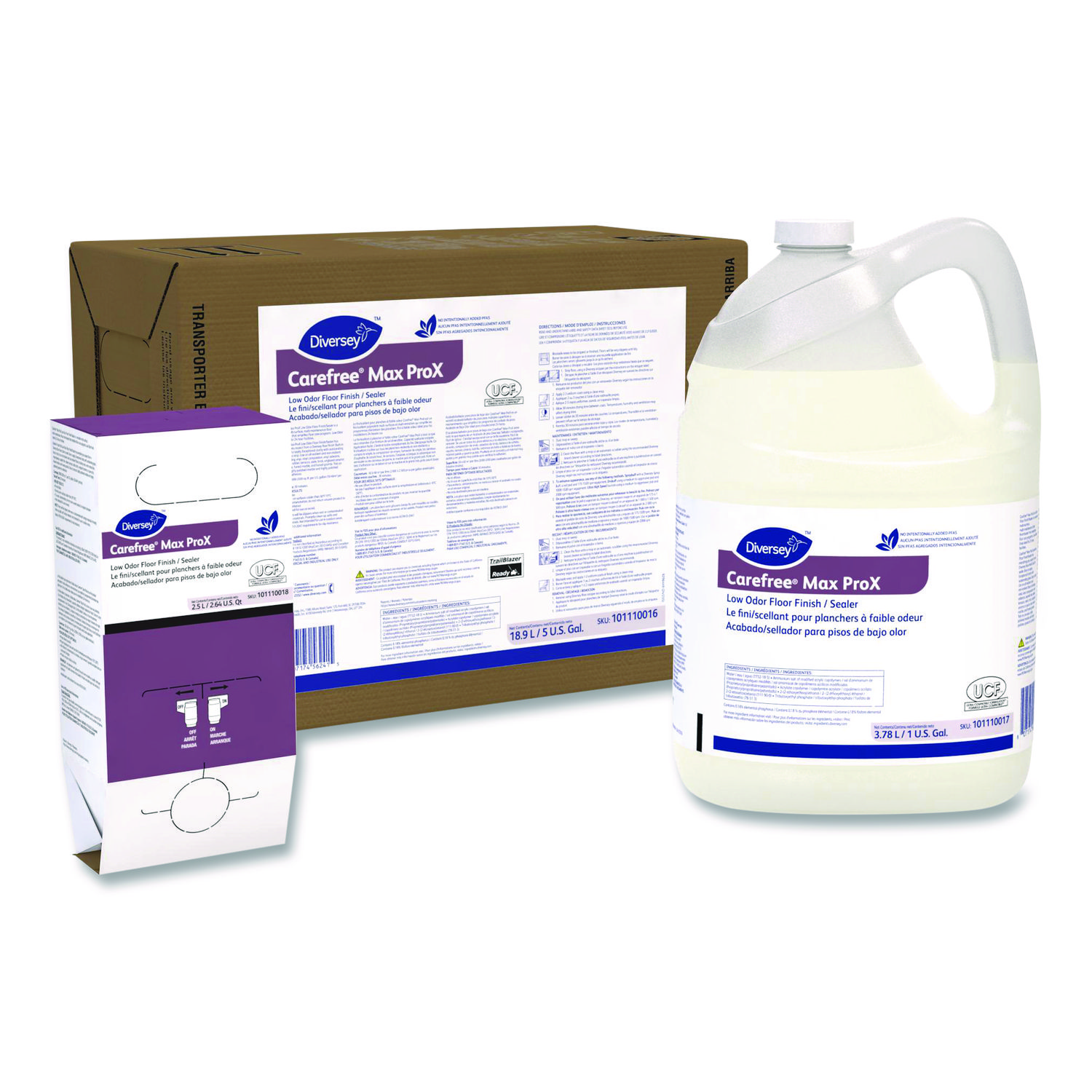 Carefree® Max ProX Low Odor Floor Finish/Sealer is a versatile multi-surface, multi-maintenance floor finish/sealer that simplifies floor care programs. Low-odor finish ideal for 24-hour facilities. Application: Floor Finish; Applicable Material: Resilient Tile; Sealed Hard Surfaces; Physical Form: Liquid; Product Packaging: Bottle.