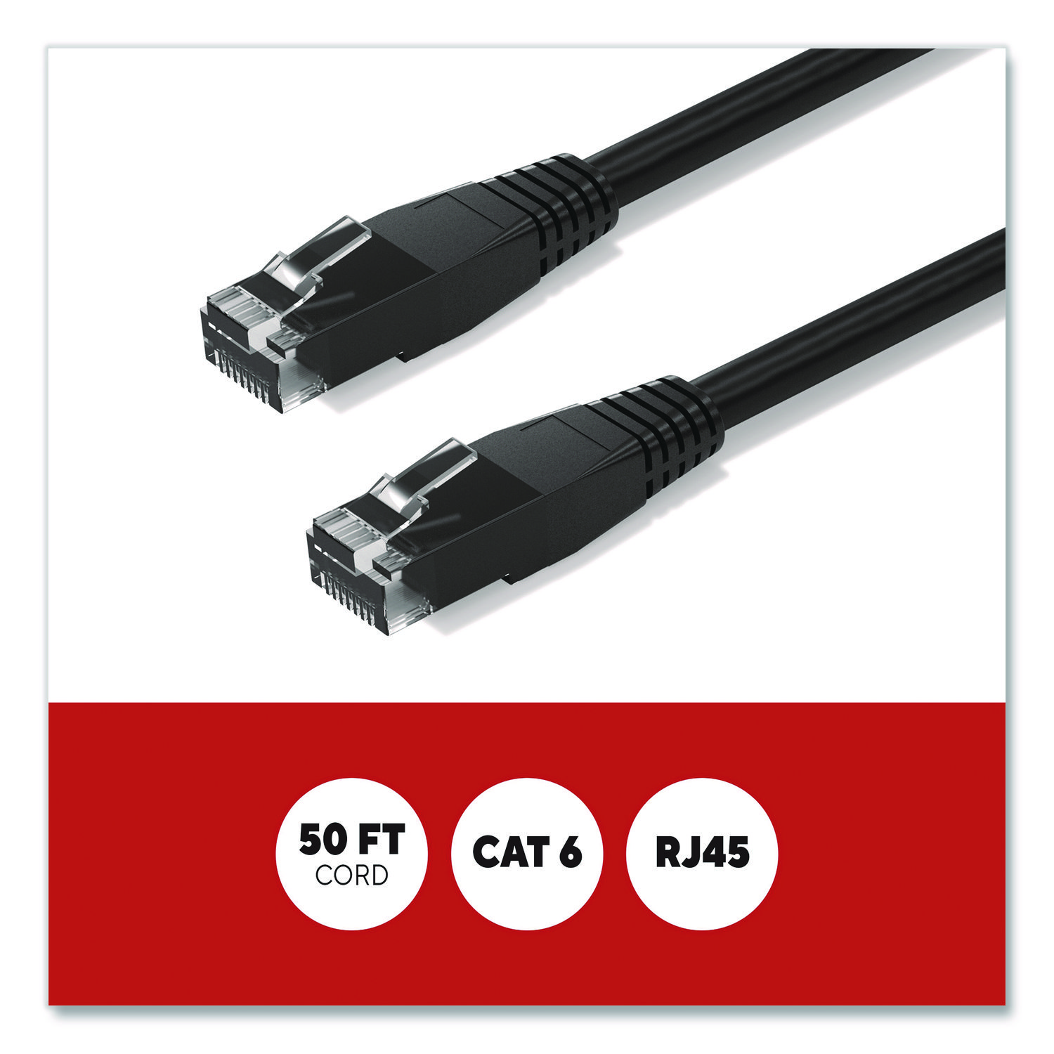 CAT6 Ethernet Cable, 50 ft, Black, 10/Pack