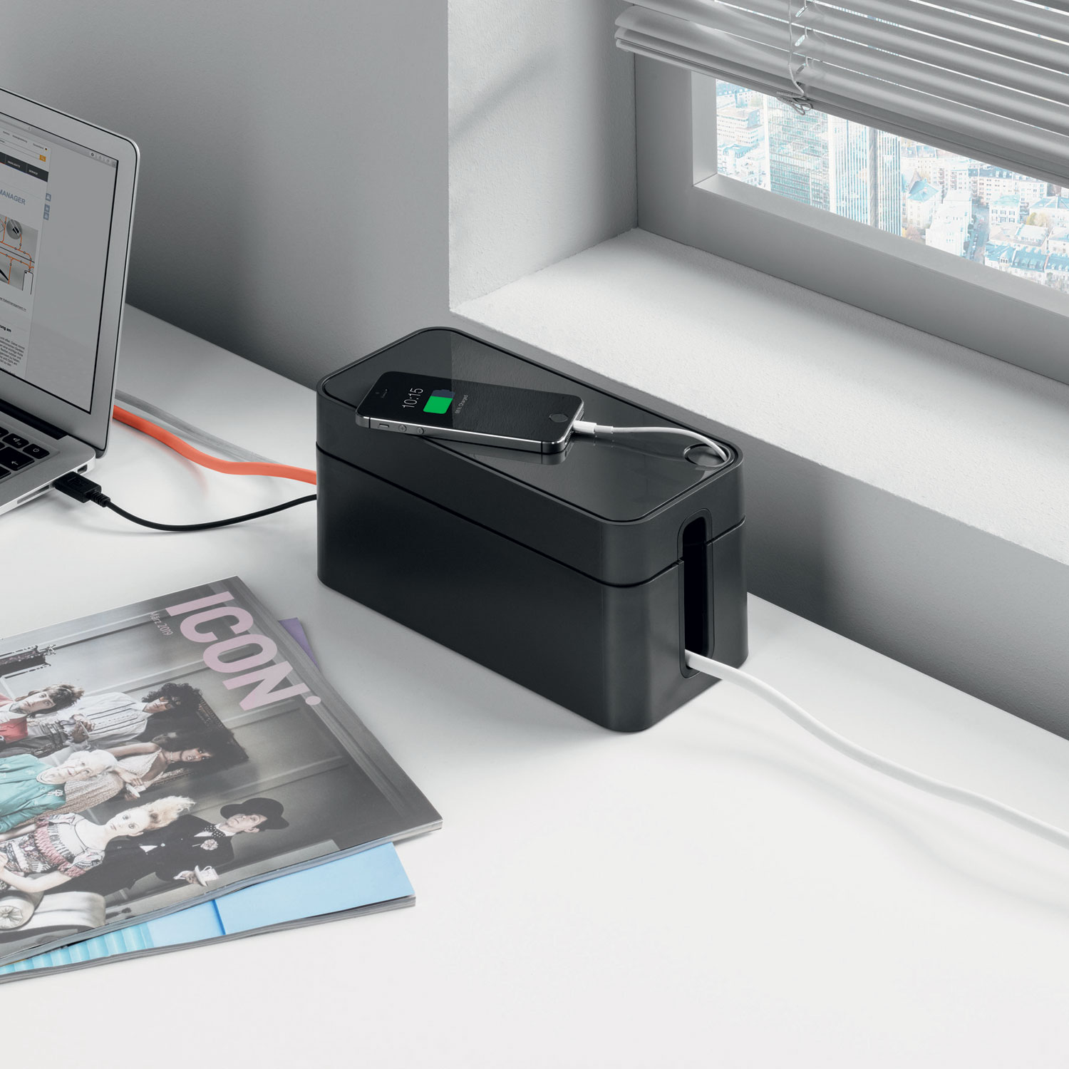 CAVOLINE Cable Management Box, 9.6″ w x 4.96″ d x 4.56″ h, Small, Charcoal