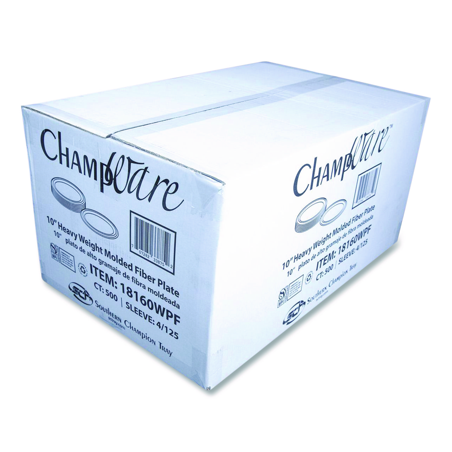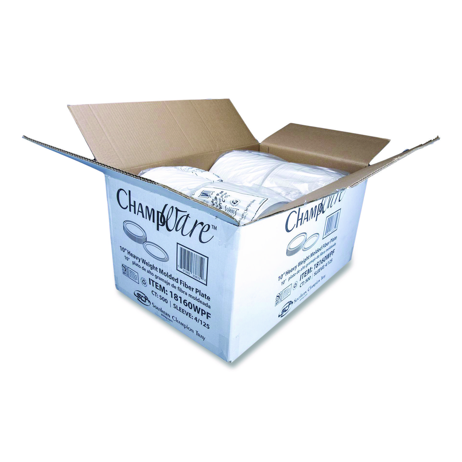 ChampWare Molded Fiber Tableware, Molded Fiber Plate, 10″ dia, White, 125 Plates/Sleeve, 4 Sleeves/Carton