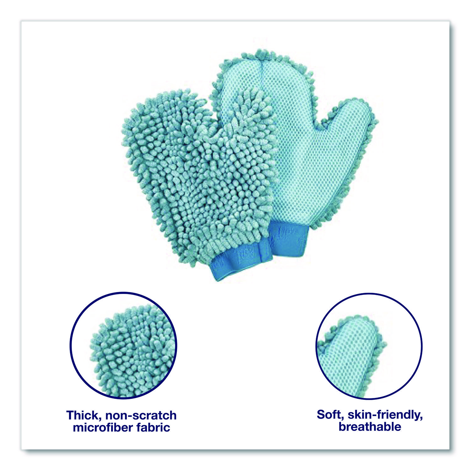 Say goodbye to stubborn dirt and hello to effortless cleaning with our dual-sided microfiber washing and scrubbing mitts. Designed for versatility, these mitts are perfect for washing your car, scrubbing patio furniture or tackling any outdoor mess. One side features a durable mesh that powers through caked-on grime, while the other side is made of plush microfiber for a gentle, effective clean. A built-in thumb and center seam give you precise control, while the elastic cuff prevents the mitt from sliding or soaking through. Whether you’re detailing your ride or sprucing up your backyard setup, these mitts get the job done right. Bristle Material: Chenille; Bristle Color: Blue; Type: Mitts; Material(s): Chenille Fabric.