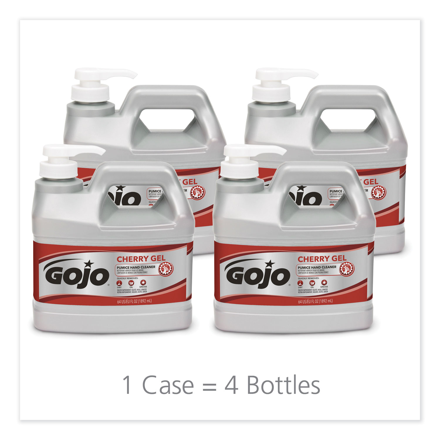 Wash away even the toughest soils with the heavy-duty GOJO Cherry Gel Pumice Hand Cleaner. This formulation is designed to clean hardworking hands that have been exposed to heavy metals, grease, paint and tar. The gel-style cleaner clings to hands for easy cleaning and doesn’t fall off into the sink. It’s easy to use and spreads quickly across hands and arms. The dye-free formulation features natural pumice scrubbers that break down difficult soils and is carefully balanced to provide superior cleaning performance that enhances skin feel. It leaves hands feeling refreshed and smelling clean after use thanks to the refreshing cherry scent. Soap Type: Pumice/Scrubber Gel; Volume Capacity: 0.5 gal; Scent: Cherry; Personal Soaps Application: Hand.
