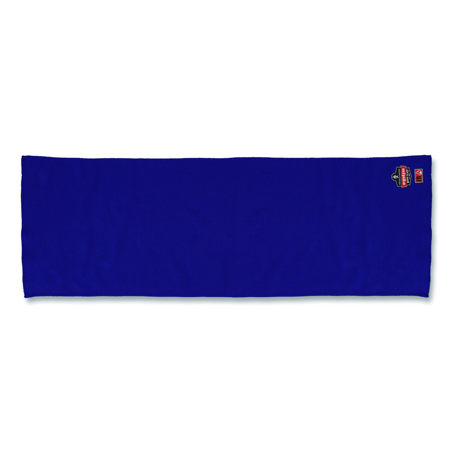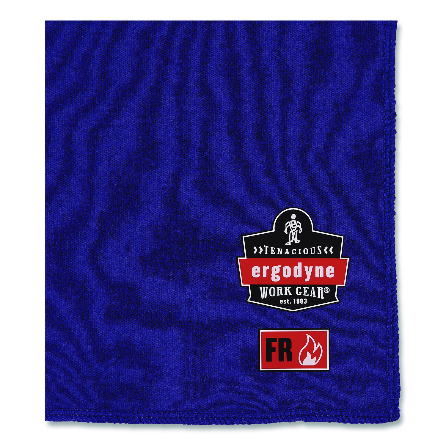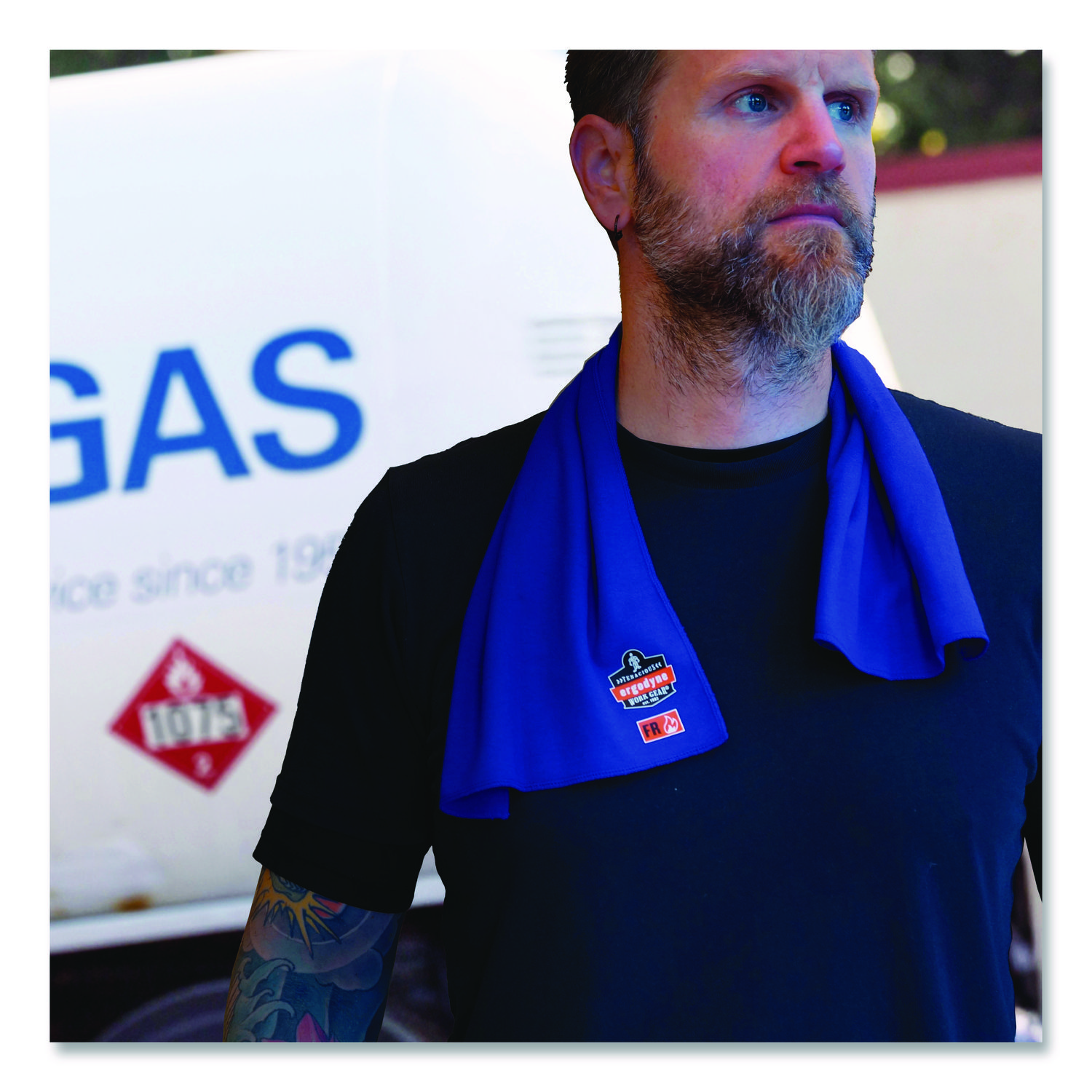 The Chill-Its 6606FR Fire Resistant Cooling Towel offers cooling relief and fire-resistant protection. With a NFPA 70E CAT 1 classification, the fire-resistant fabric of this cooling towel will not melt or drip and is designed for environments involving electric arc flash exposure. For an instant cooling effect that lasts up to two hours, simply activate the towel’s modacrylic fibers with water. When worn dry, the soft, stretchy material provides a moisture-wicking and absorbent cooling effect, drawing sweat away and helping to regulate body temperature. Lightweight, all-day comfortable and sized to provide plenty of coverage, this fire-resistant cooling towel folds to a convenient storage size, too. Ideal PPE for petrochemical, electrical, oil and gas and refinery work. Apparel Type: Cooling Towel; Material(s): Modacrylic Knit; Color(s): Blue; Color Family: Blue.
