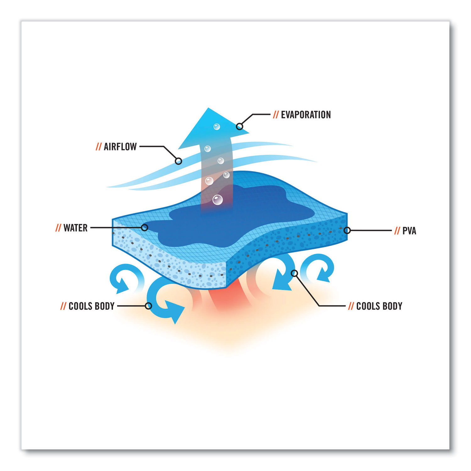 Advanced PVA material keeps you cool without the bulk and activates easily and quickly when run under water for one minute. Re-usable, just re-wet. Breakaway hook and loop closure maintains a snug fit. Apparel Type: Cooling Bandana; Material(s): Cotton; PVA; Color(s): Lime; Color Family: Green.