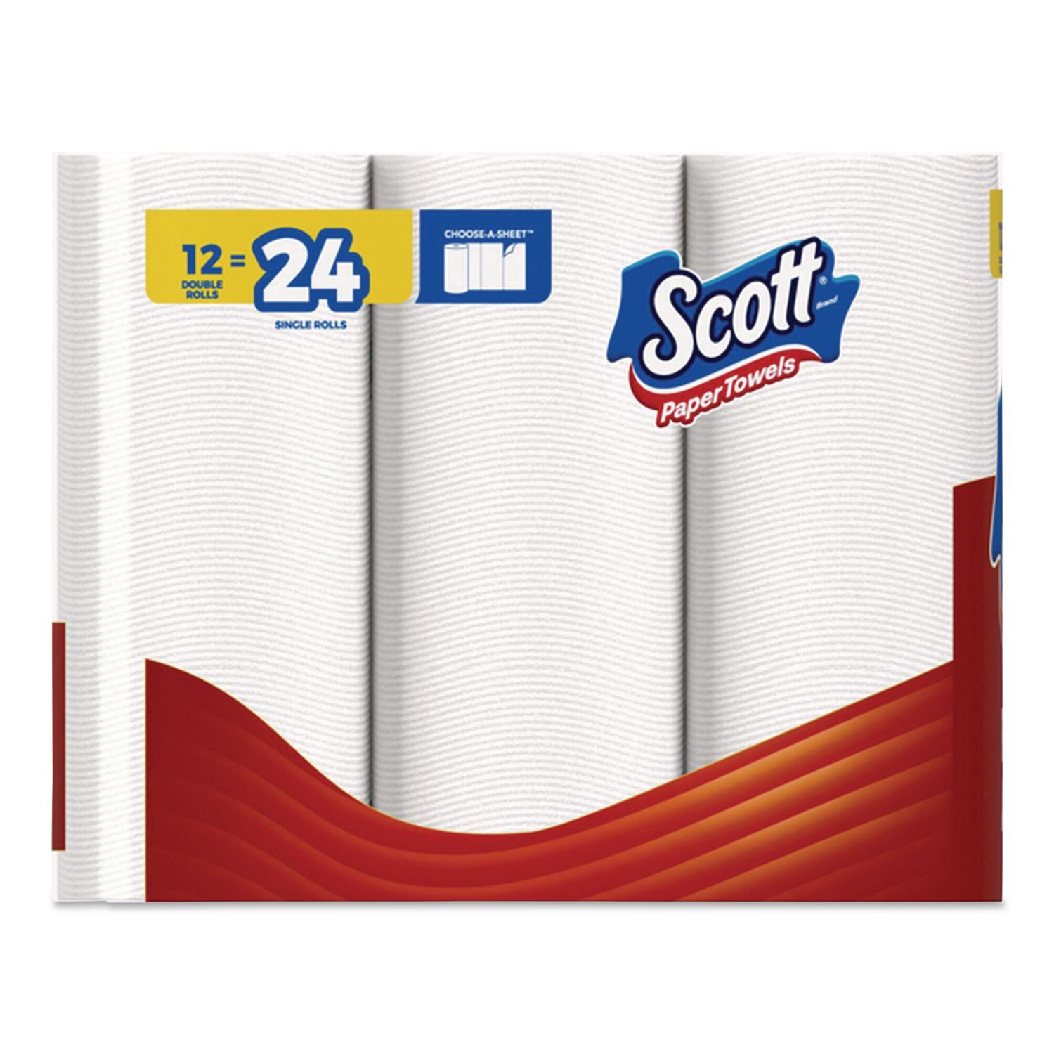 Scott® Paper Towels Choose-A-Sheet with Quick Absorbing Ridges get the job done faster to keep you going about your business and let you get back to what matters most. Scott® disposable kitchen paper towels soak up spills quickly and won’t let life’s messes slow you down. Offering the value you expect and the quality you can rely on from the Scott® brand. Double Roll. Towel/Wipe Type: Perforated Roll Towels; Material(s): Paper; Number of Plies: 1; Color(s): White.