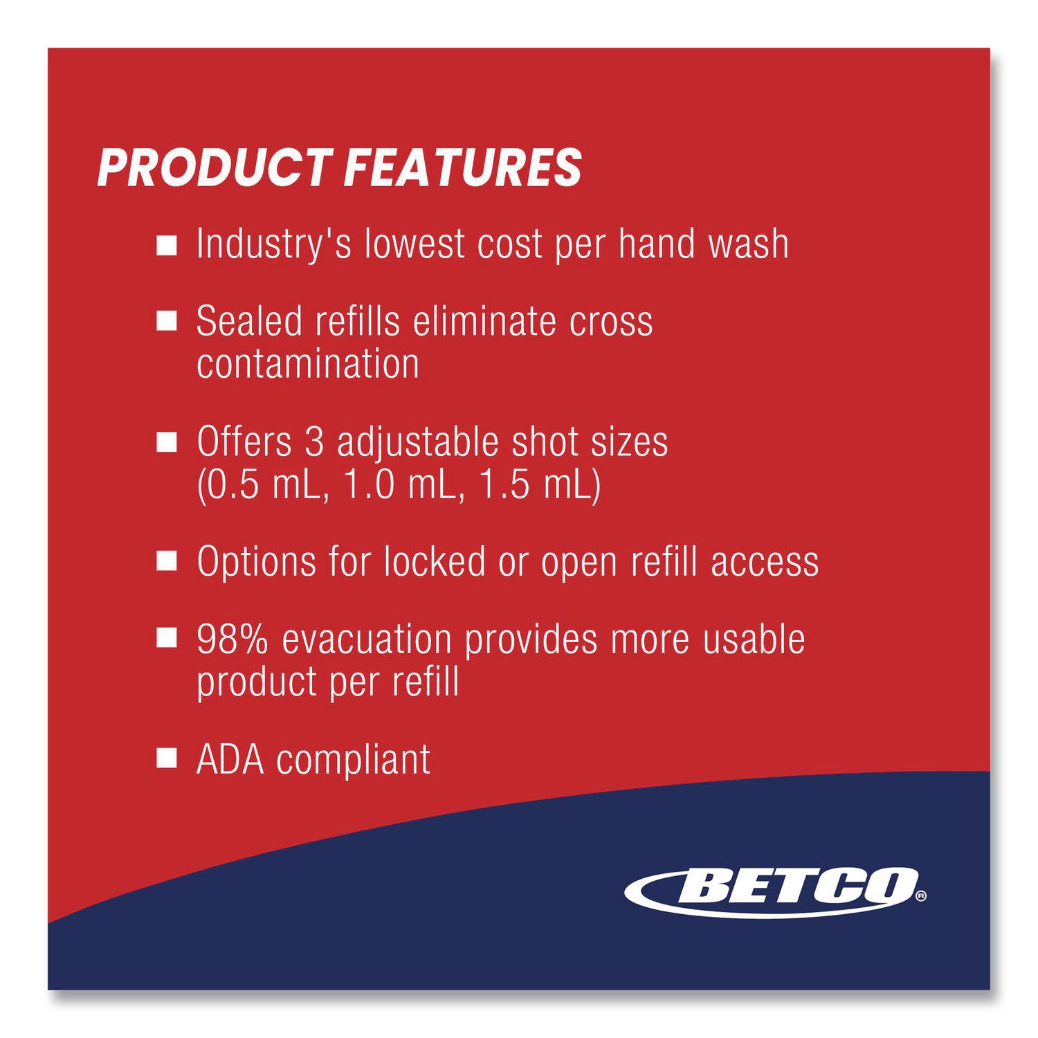 | Special Features: | Foam Soap Dispenser—Enhanced foam pump lasts through 125 refills. Improved thick, rich foam quality. |