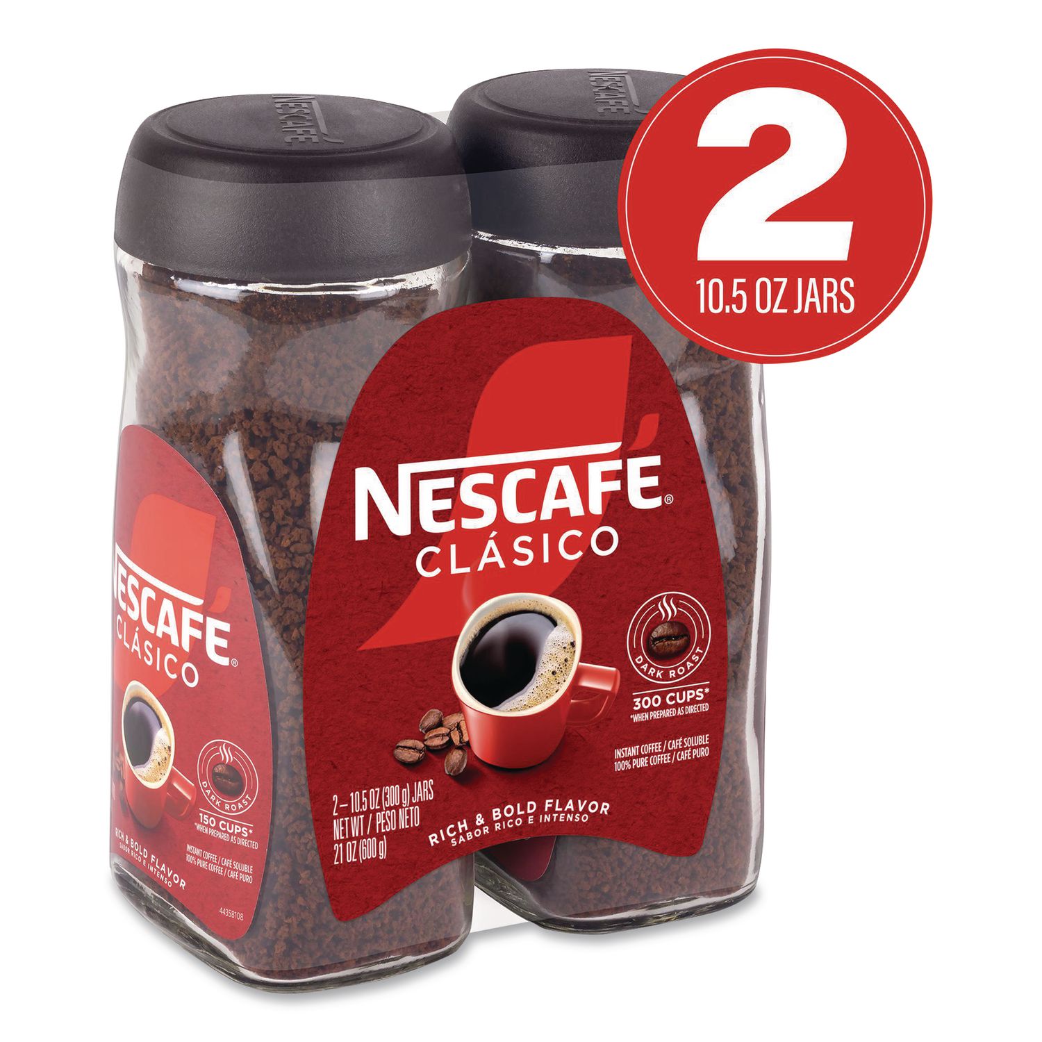Nescafé® Clasico™ is the leading coffee for Latinos in the U.S. It is 100% pure coffee, made from a blend of selected coffee beans, carefully roasted to capture its full flavor and aroma. Get your “cafecito” fix with the unique taste of Nescafé Clasico™. Beverage Type: Instant Coffee; Flavor: Clasico™; Roast Type: Dark; Product Packaging: Jar.