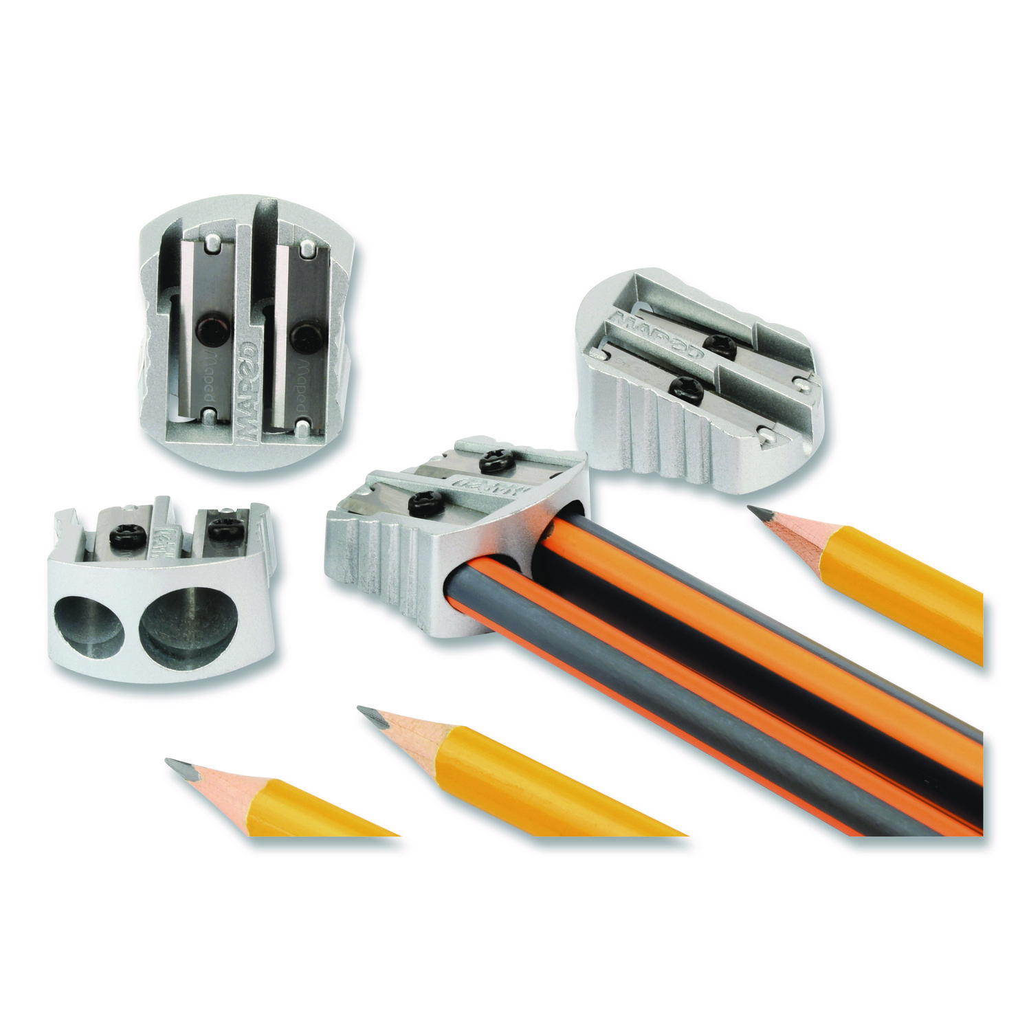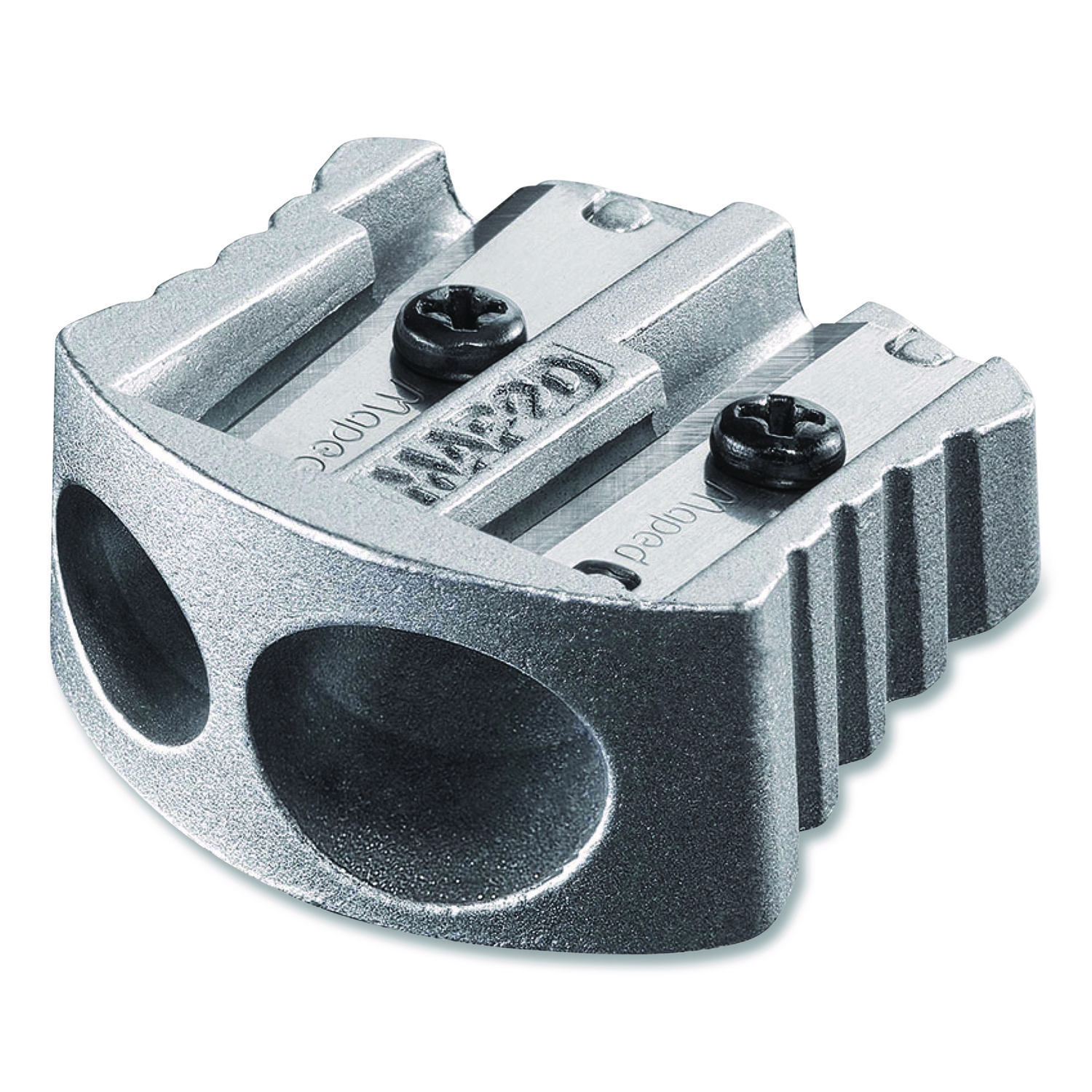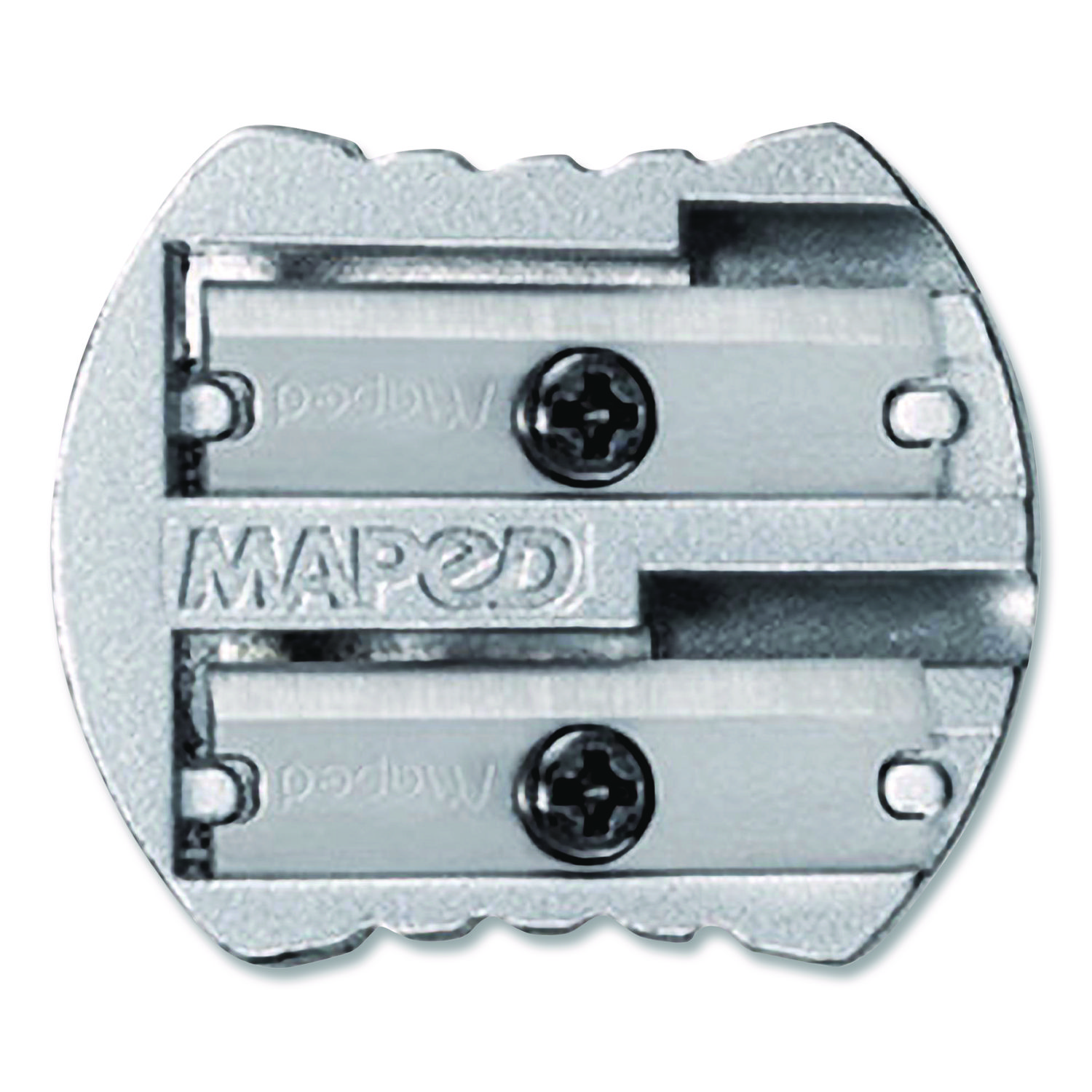Keep your pencils sharp with the Maped Classic 2-Hole Metal Pencil Sharpener! The two high-quality steel blades are mounted in a durable metal frame and easily sharpen all standard and jumbo pencils. And the small size makes it great for pencil cases, bags, desks and more! Sharpener Type: Manual; Power Type: Manual; Batteries Required: No; Intended-Use Environment: General Use; Home; Office; School.