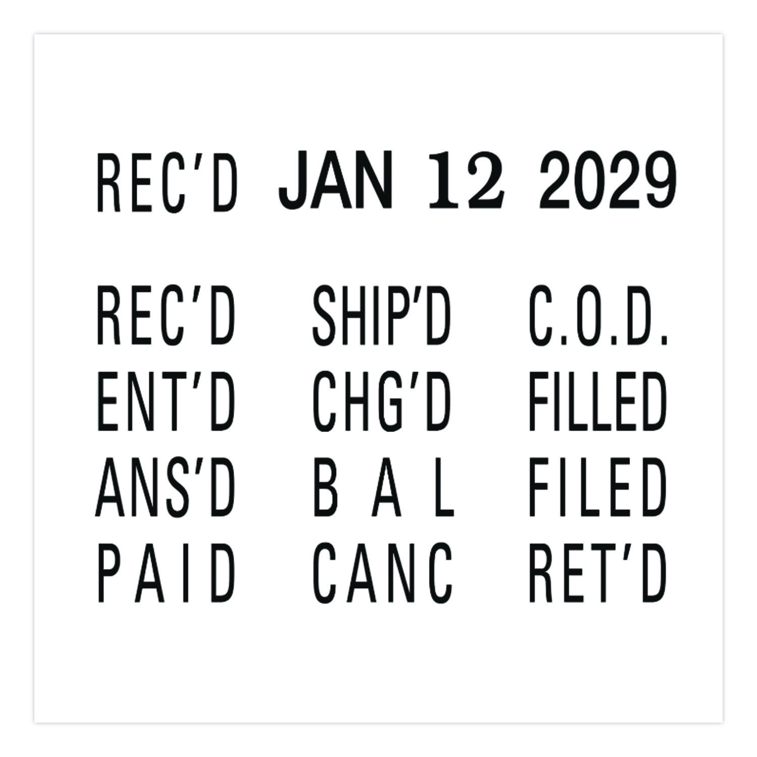 Message(s): REC'D; ENT'D; ANS'D; PAID; SHIP'D; CHG'D; RET'D; BAL; CANC; C.O.D.; FILED; FILLED