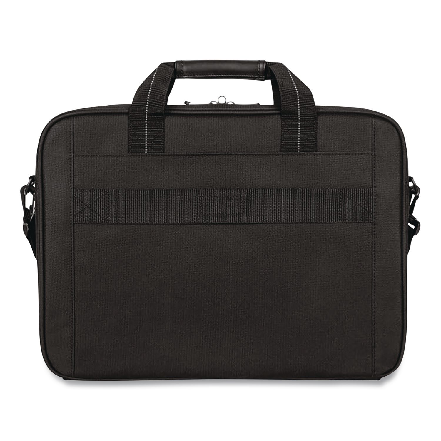 Thin, lightweight case equipped to store all of your essentials on the go. Ideal for the casual business executive, this functional case features a classic look. The spacious front pocket includes smartly organized compartments to store your smartphone, pens, business cards, adapters, cords and other accessories. Constructed of durable polyester material, the case includes metal, contoured zipper pulls, comfortable padded handles and shoulder strap. The large back slip pocket is great for storing files and documents while the included trolley strap makes it easy to stack this case onto rolling luggage. For Use With: Laptops; Color(s): Black; Color Family: Black; Material(s): Polyester.