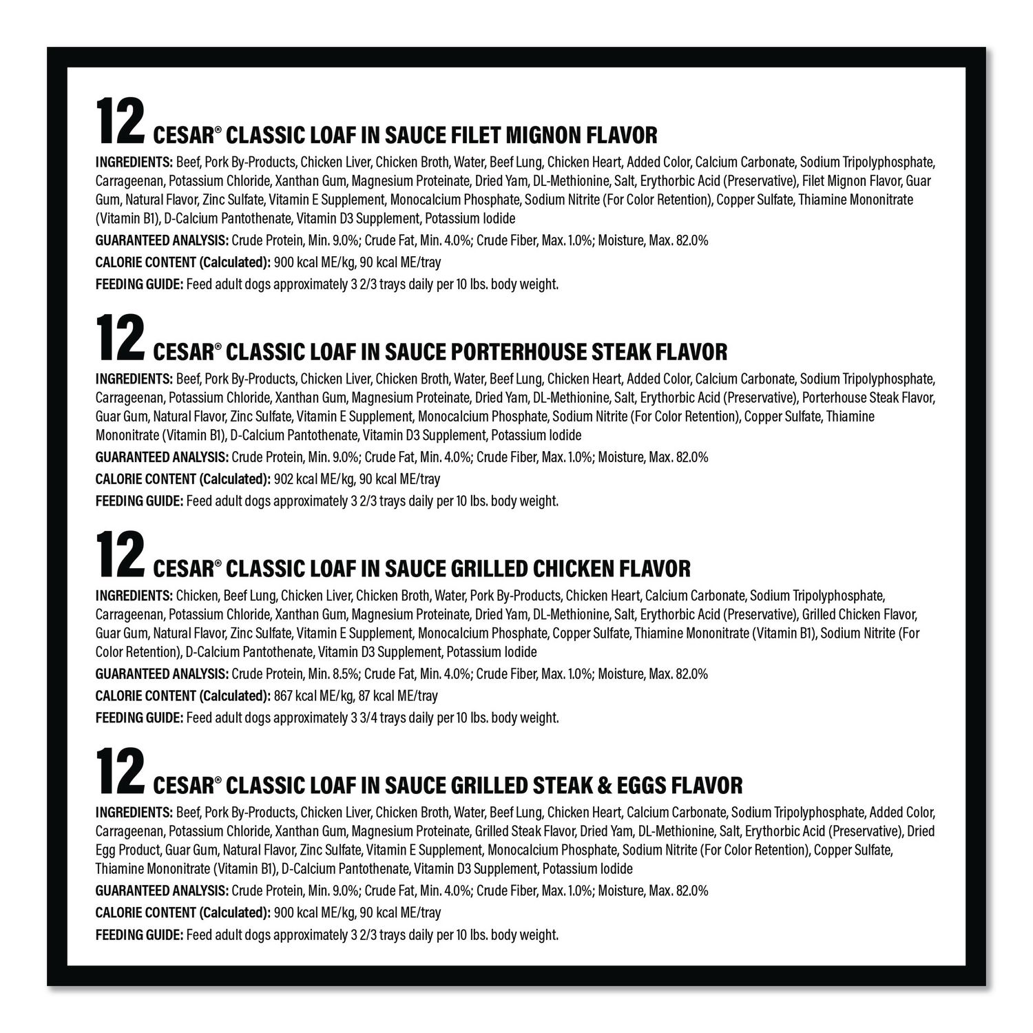 | Flavor: | Filet Mignon; Grilled Chicken Flavors; Grilled Steak and Eggs; Porterhouse Steak |