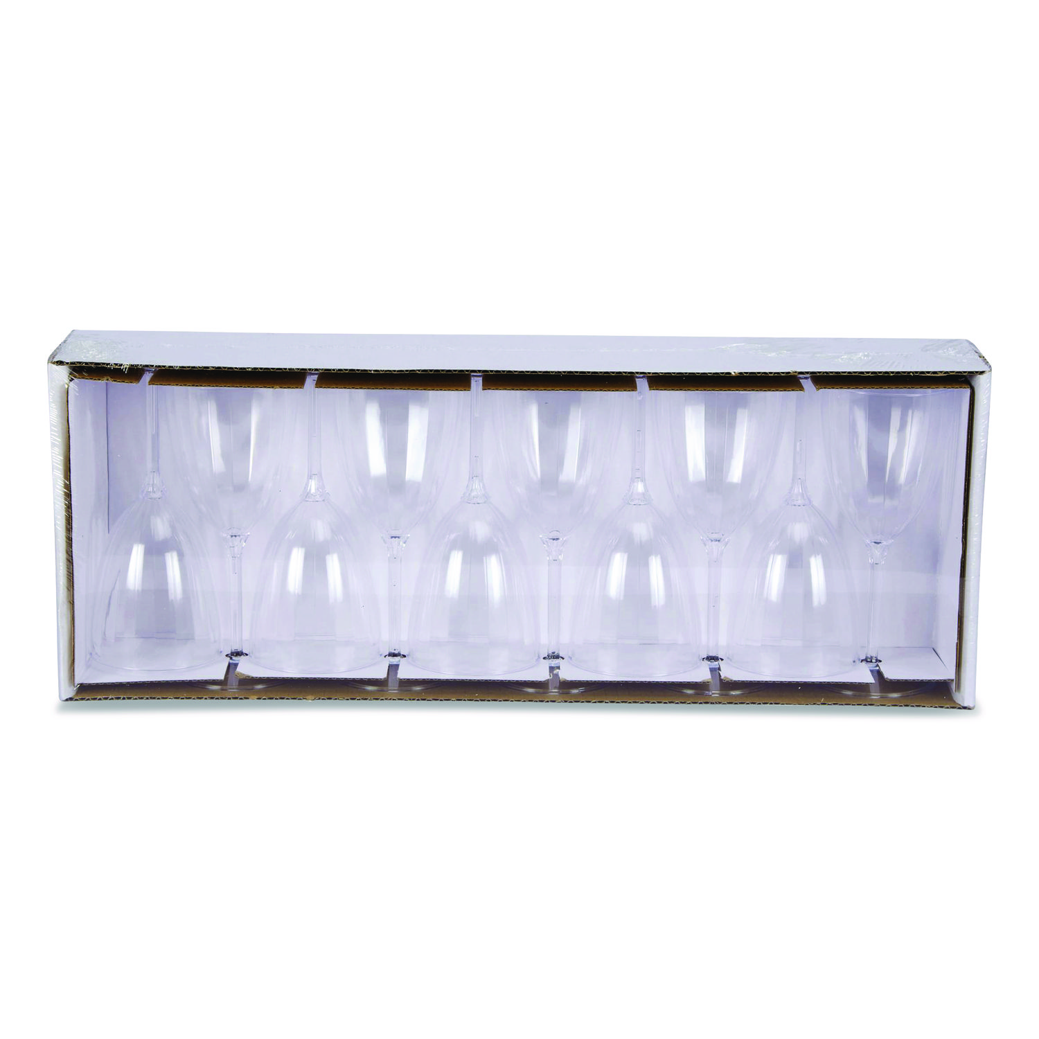 The elegant appearance of these glasses mimics the sparkle of fine-cut crystal. Their one-piece construction saves time over similar two-piece disposables. These lovely glasses provide the appearance of crystal without the accompanying breakability. They offer the beauty of crystal in a disposable. Cup Type: Fluted Wine Glass; Interior Volume Capacity: 6 oz; Material(s): Plastic; Polystyrene; Material Type: Plastic.