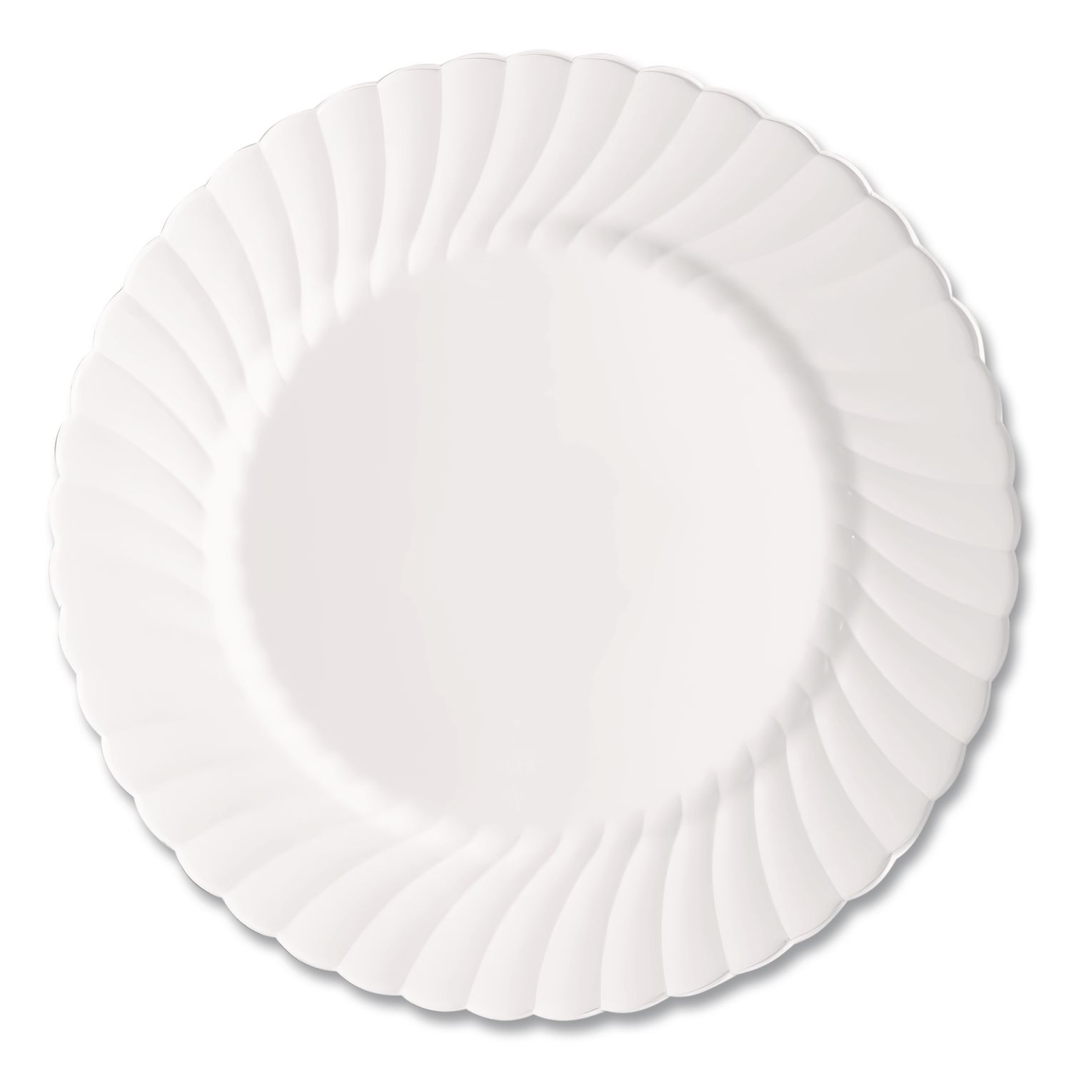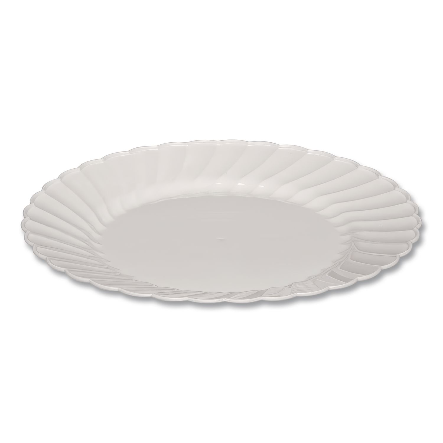 Stylish plastic dinnerware is made to be sturdy. Presents the elegance of china in a more durable plastic form. Provides the convenience of easy cleanup and disposability. Adds a touch of grace to any occasion. Dinnerware Type: Plate; Material Type: Plastic; Material(s): Plastic; Shape: Round.