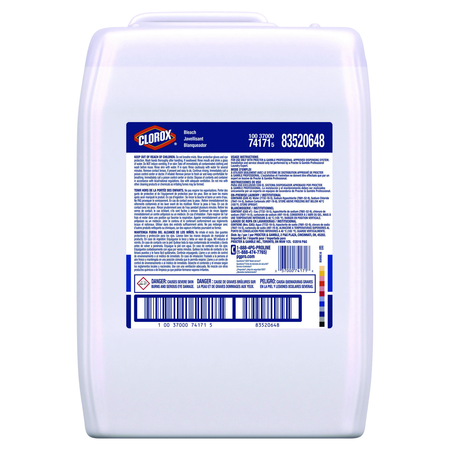 Clorox® bleach now has bleaching power to safely and effectively eliminate tough business stains. Application: Laundry Booster; Applicable Material: Linens; Chemical Compound: Water (7732-18-5); Sodium Hypochlorite (7681-52-9); Sodium Chloride (7647-14-5); Sodium Carbonate (497-19-8); Sodium Hydroxide (1310-73-2); Dirt Types: Soil.