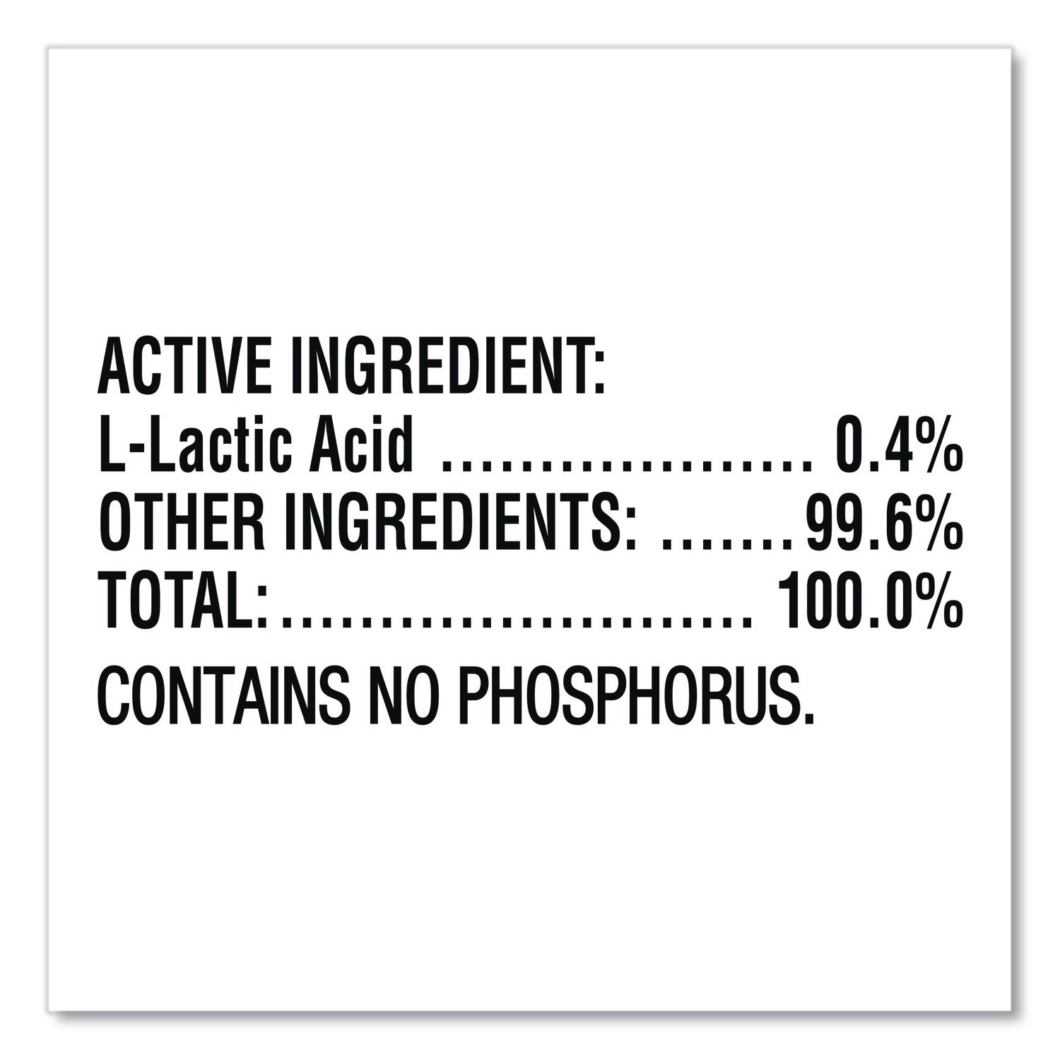 | Chemical Compound: | L-Lactic Acid 0.4%; Contains No Phosphorous |