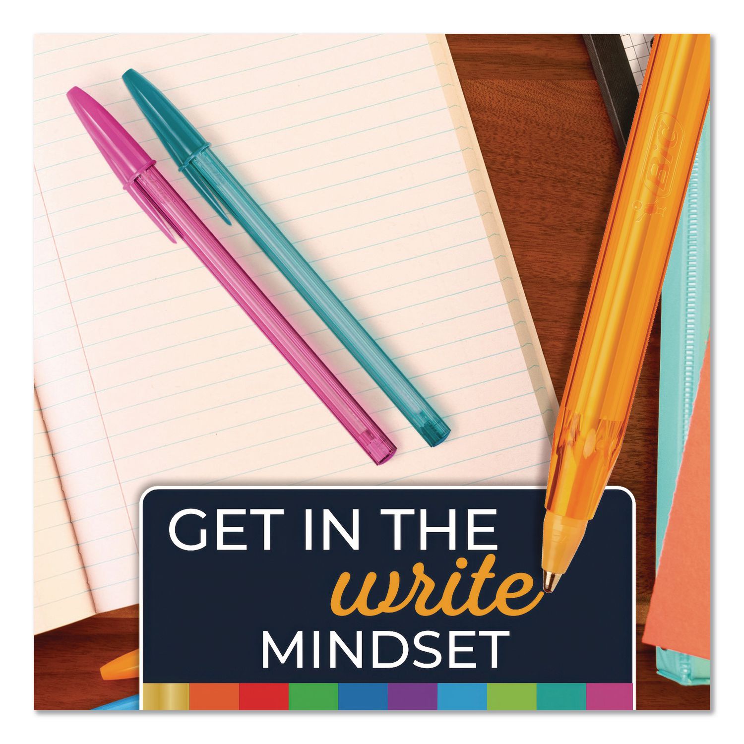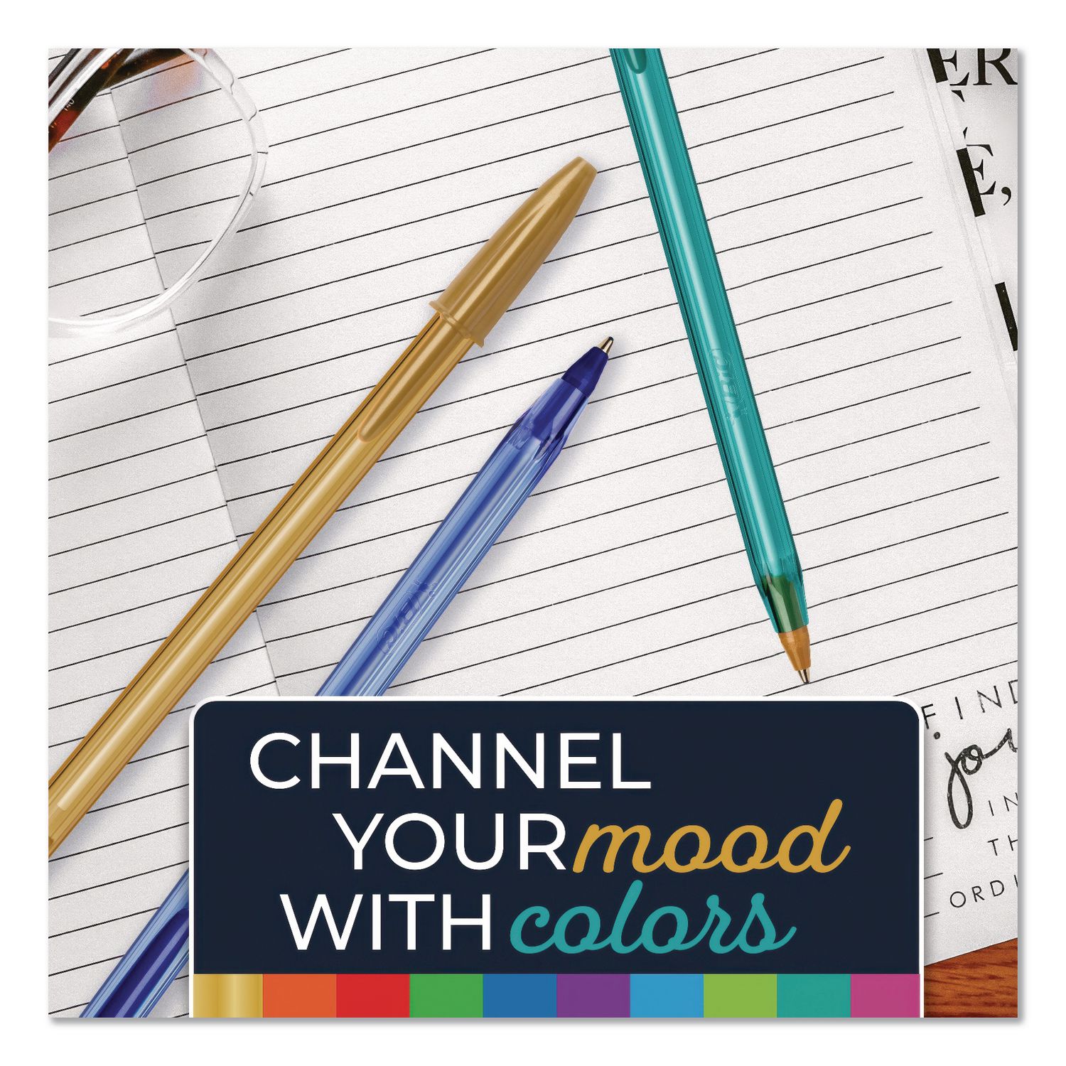 Add fun and flair to notes, journals and lists with the legendary BIC® Cristal® pen in fun, fashionable colors. Colors are known to affect our mood, so BIC® created the Color Cues line to give students a positive boost with extra cheerful inks, barrels and caps for near limitless self-expression. Making writing and drawing more uplifting than ever, these soon to be iconic ballpoints also offer Cristal® Xtra Smooth handling for the ultimate in frustration-free writing. Choose Color Cues Cristal® Xtra Smooth Ballpoint Pens; they’re perfect for schoolwork, journaling, creative writing, drawing and more! Pen Sub-Brand & Product Family: Color Cues Cristal® Xtra Smooth; Pen Type: Ballpoint Pen; Pen Style: Stick; Pen Tip Type: Conical.