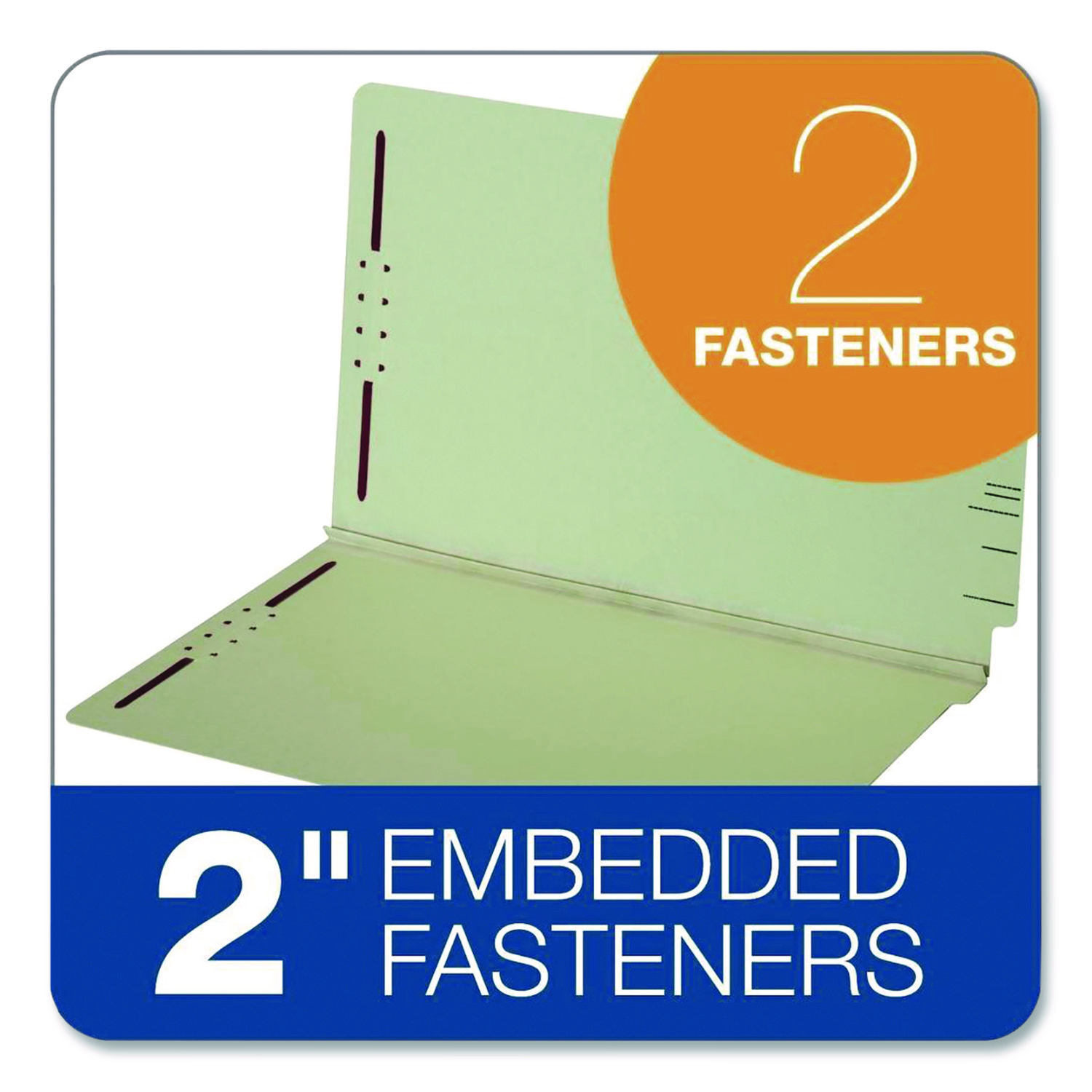Colored Pressboard End Tab Fastener Folders, Straight Tab, Expands 2″, 2 Fasteners, Legal Size, Light Green, 25/Box
