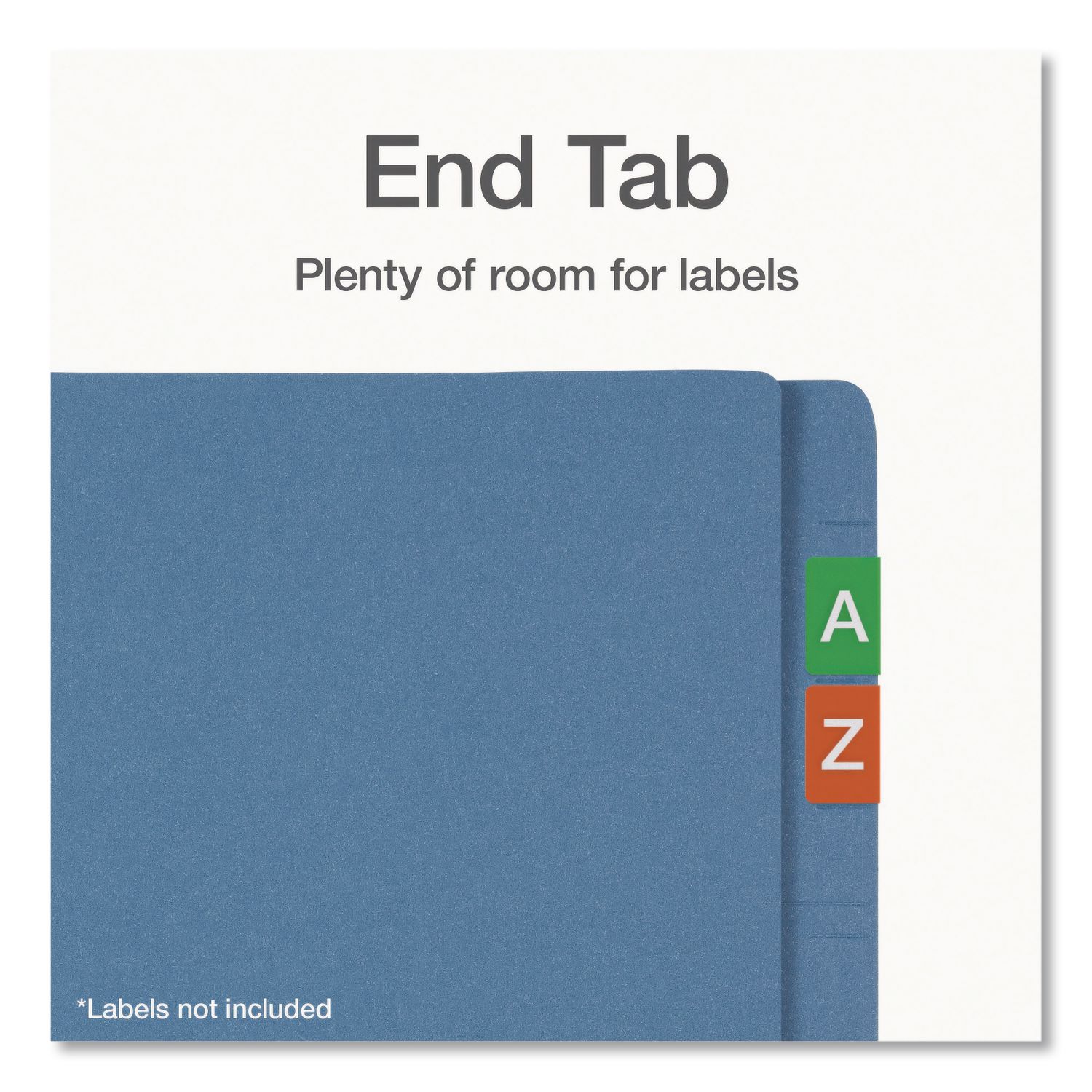 Bring color-coding efficiency to your shelf files! 2″ capacity fastener in front and back interior covers organize documents. Bottom scored for 3/4″ expansion. Standard 9 1/2″ high front. Double-ply reinforced tabs. 11 pt. stock. Folder Size: Legal; Total Number of Fasteners: 2; Cover Tab Style: End Tab; Cover Tab Cut: Straight.
