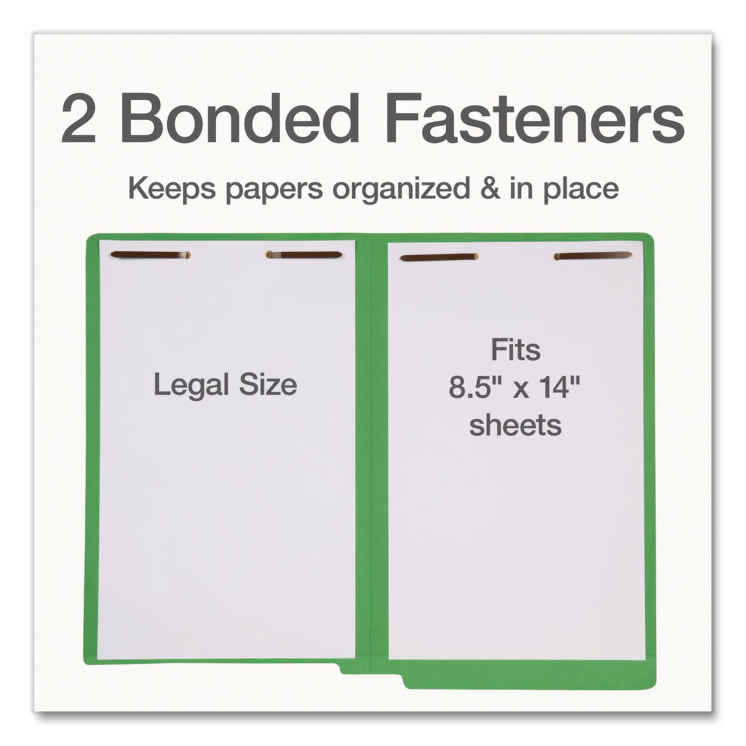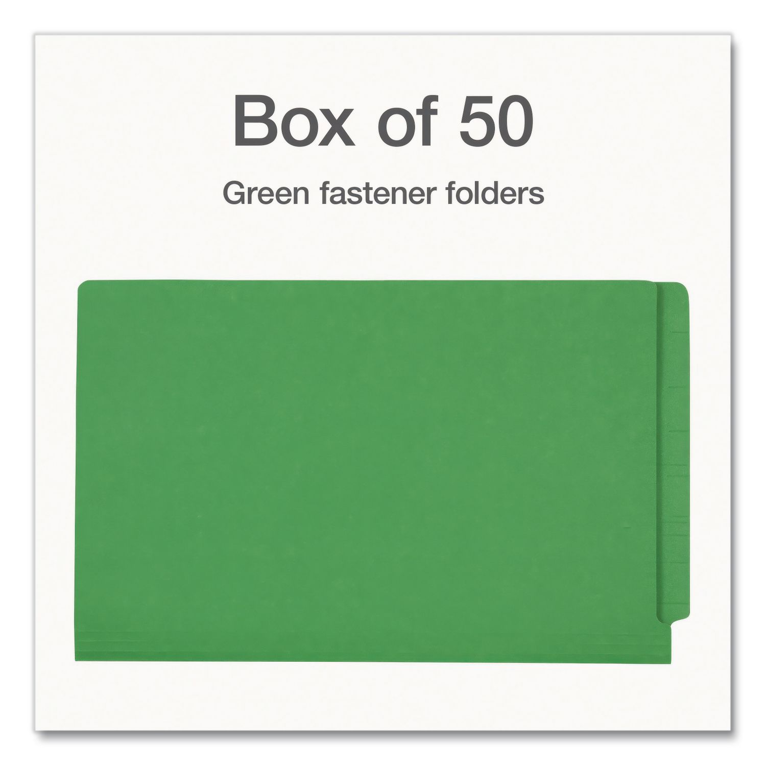 Colored Reinforced End Tab Fastener Folders, Straight Tab, Expands 0.75″, 2 Fasteners, Legal Size, Green, 50/Box