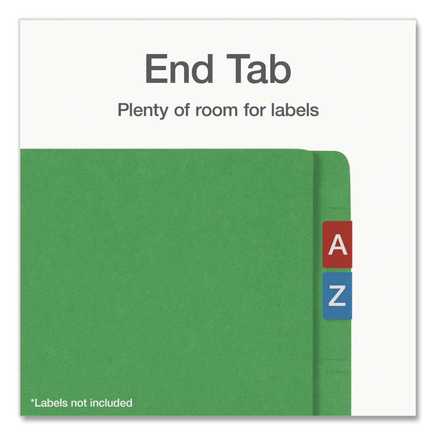 Bring color-coding efficiency to your shelf files! 2″ capacity fastener in front and back interior covers organize documents. Bottom scored for 3/4″ expansion. Standard 9 1/2″ high front. Double-ply reinforced tabs. 11 pt. stock. Folder Size: Legal; Total Number of Fasteners: 2; Cover Tab Style: End Tab; Cover Tab Cut: Straight.