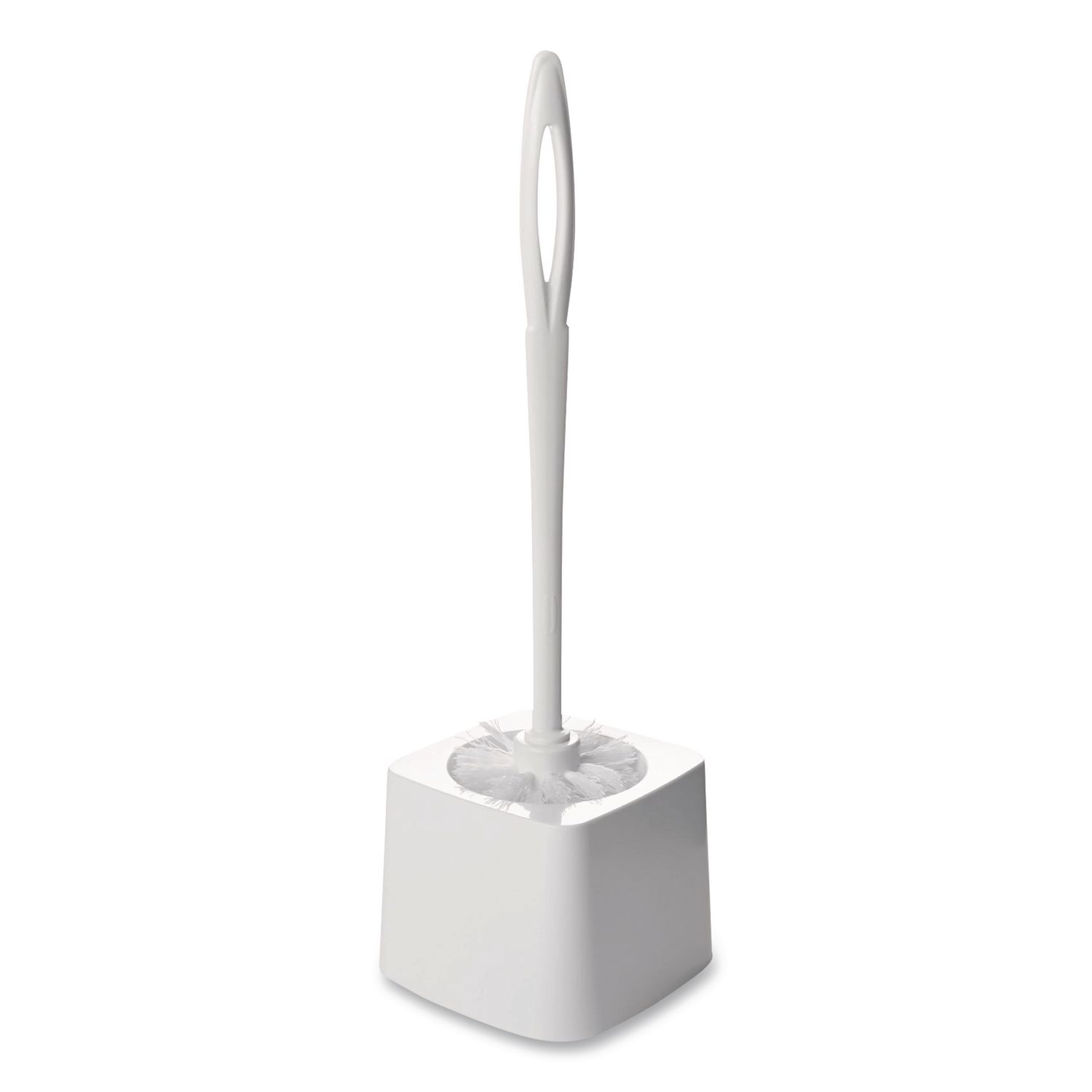 The Rubbermaid Commercial Products Toilet Brush with Plastic Handle is ideal for commercial, medical, and industrial applications. The sturdy plastic toilet bowl brush handle is suited for moderate to heavy cleaning. A hole near the end of the toilet brush handle allows the toilet cleaning brush to be hung for storage. The white polypropylene bristles are resistant to stains, odors, bacteria, fungi, and wear. Handle Length: 10″; Overall Length: 15″; Handle Material(s): Plastic; Color(s): White.