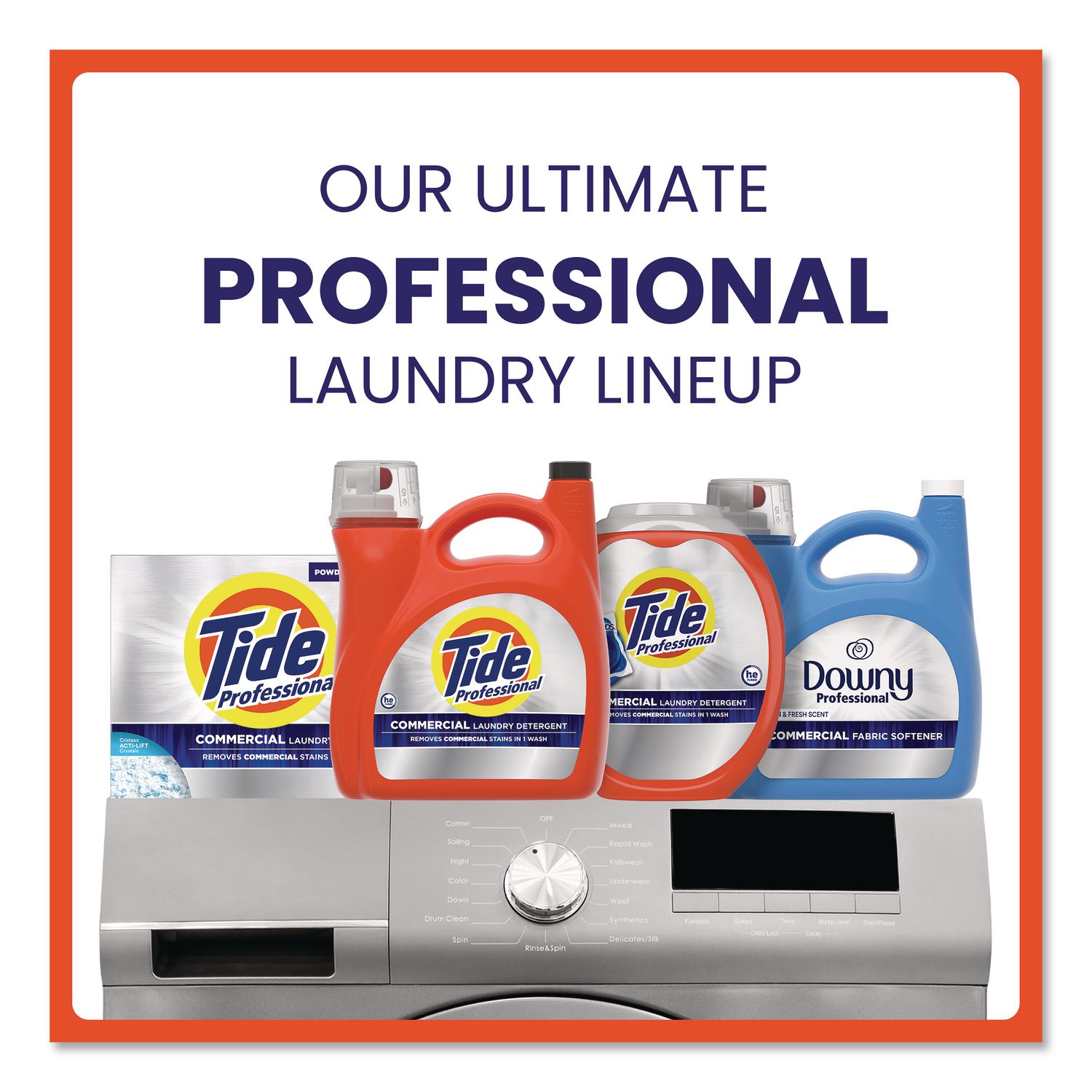 America’s #1 Laundry Detergent – Now Formulated for Professionals. This Commercial Liquid Laundry Detergent is designed for businesses with high volume laundry washing needs, removing commercial stains in 1 one wash. Tide® PRO Commercial Liquid Laundry Detergent helps remove tough stains like food grease, hair and make-up products, coffee and more! Ideal for lodging, salon and spas, care homes and more. High Efficiency—Designed for HE machines. HE Turbo Clean formula quickly collapses suds and targets tough stains. Bulk size detergent good for 129 loads. Application: HE Laundry Detergent; Applicable Material: Fabric; Chemical Compound: Water; Sodium and MEA C10-16 Alkylbenzenesulfonate; C10-16 Alketh; Sodium Lauryl Sulfate; MEA Laureth Sulfate; Alcohol; Polyethyleneimines Alkoxylated; Sodium and MEA Citrate; Propylene Glycol; Sodium and MEA Salts of C12-18 Fatty Acids; C10-16 Alkyldimethylamine Oxide; Ethanolamine; Tetrasodium Glutamate Diacetate; Sodium Cumenesulfonate; Hydrogenated Castor Oil; Calcium Formate; Dimethicone or Simethicone; Phenylpropyl Ethyl Methicone and Trimethylsiloxysilicate; Methyl Di-T-Butyl Hydroxyhydrocinnamate; Diethylenetriamine; Subtilisin; Benzisothiazolinone; Amylase Enzyme; Mannanase Enzyme; Colorants; Fragrances; Dirt Types: Dirt; Stains.