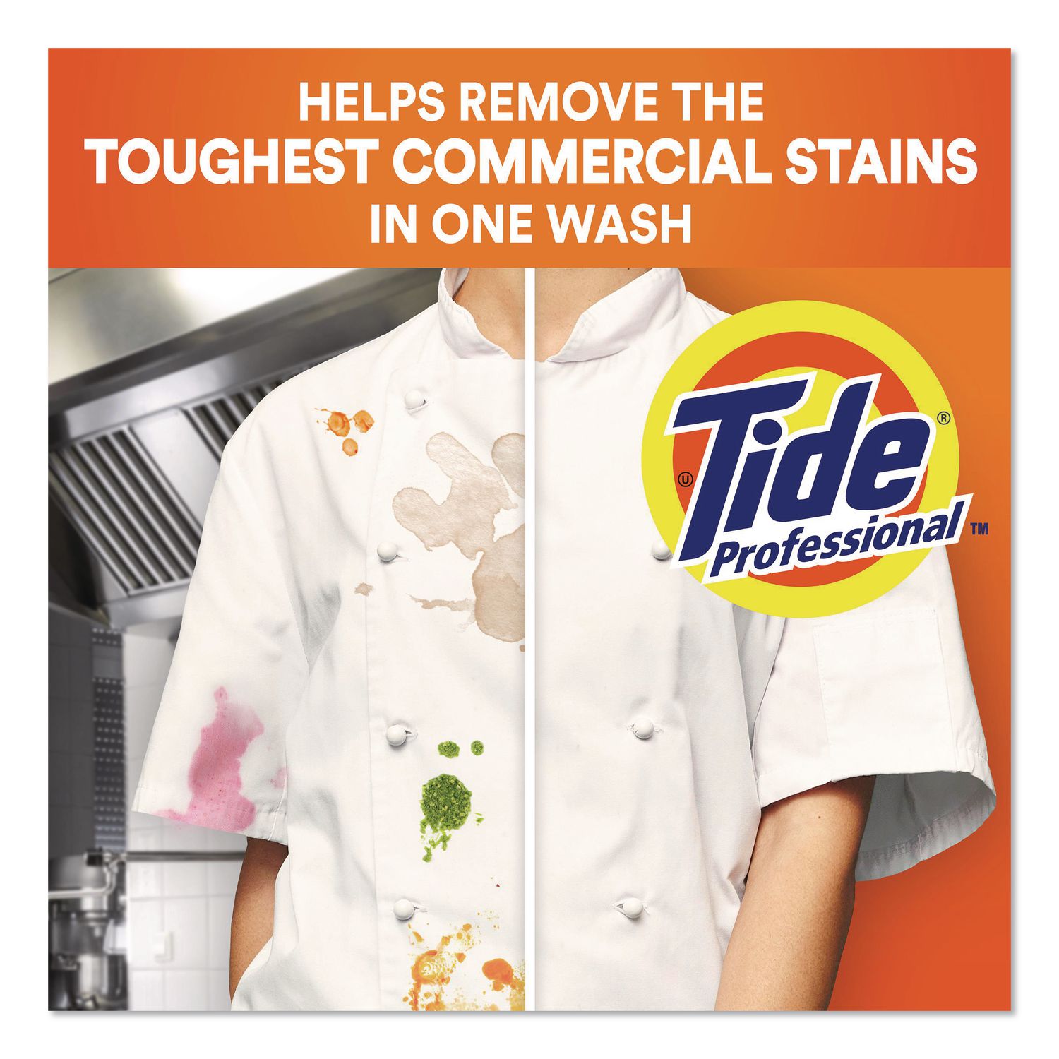 Tide® PRO Powder Laundry Detergent is the ultimate solution for businesses looking for reliable laundry detergent in bulk. This powdered laundry detergent effectively tackles tough stains, including blood, coffee, grease, oil and makeup, ensuring your linens and uniforms look clean and fresh. HE Compatible. High Efficiency—Designed for HE machines. 173 Loads. Application: HE Laundry Detergent; Applicable Material: Fabric; Chemical Compound: Sodium Sulfate; Sodium Carbonate; Sodium C10-16 Alkylbenzenesulfonate; Sodium Carbonate Peroxide; Sodium Silicate; Taed; Zeolite; Water; C10-16 Alketh; Sodium Polyacrylate; Cellulose Gum; Fragrances; Fluorescent Brightener 71; C16-18 Fatty Acids Sodium Salts; Disodium Distyrylbiphenyl Disulfonate; Subtilisin; Organosilicone Copolymer; Amylase Enzyme; Colorants; Dirt Types: Dirt; Stains.